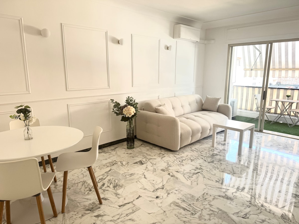 Atención: Lamentablemente, habrá obras de demolición/construcción en la calle frente a nuestro edificio desde el 7 de julio. Disfruta de una verdadera experiencia en la Riviera Francesa. Apartamento en el piso superior con una gran terraza, tumbonas, mesa y sillas para cenar al aire libre y aperitivos nocturnos. Impresionantes vistas al mar, las montañas y las villas de la Belle époque. 150 m Place Marinoni, mercado provenzal diario, restaurantes, bares y cafeterías. A 300 m de la estación de tren