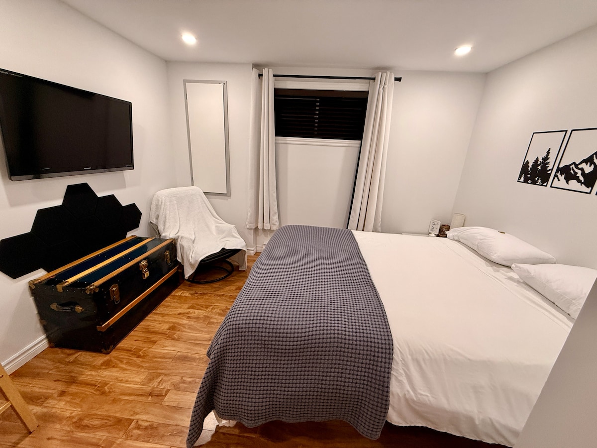 ¡Ven a vivir la hermosa ciudad de Quebec! Ven a probar todo lo que tiene para ofrecer!!! Disfruta de este apartamento para vivir el día a día con total tranquilidad. Sótano de una residencia privada. Situado en las afueras, a 10 minutos del centro de la ciudad de Quebec y del Château Frontenac. Transporte público a pocos metros. Parques para senderismo cerca, farmacias y supermercados también. Piscina cubierta municipal Netflix, Internet de alta velocidad. NO FUMADORES.