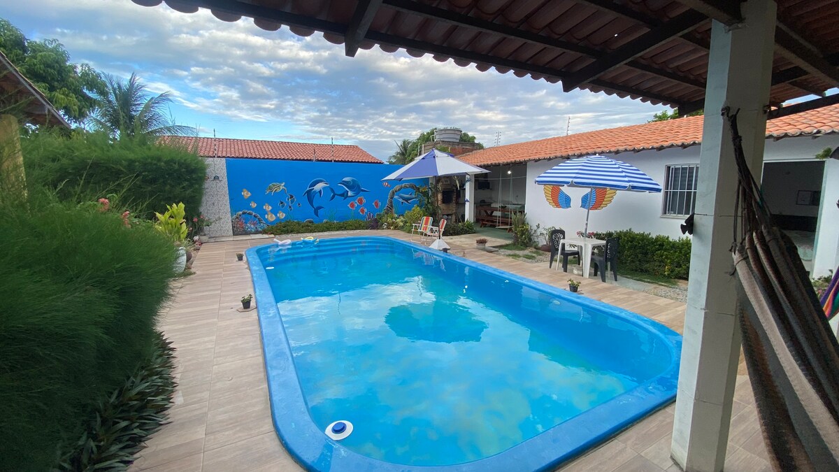 Come and enjoy an unforgettable vacation in our oasis just 300 m from the beach and near the famous Beberibe Cliffs in Ceará, Brazil. Spacious, recently renovated house with 7 bedrooms (6 are suites), all with air conditioning, double beds, and hooks for hammocks. 700 m² of built area, swimming pool, barbecue area, living and dining rooms, and fully equipped kitchen. Have fun in comfort, but please note: loud music, parties, and live bands are not allowed as this is a residential neighborhood.