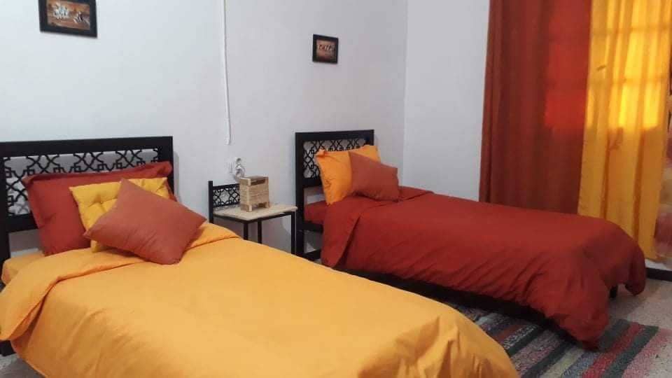 La habitación se encuentra en una casa rural situada en pleno centro de Palmeraie y a 800 metros del antiguo ksar. Esta casa fue construida respetando las tradiciones locales con ladrillo hecho con la tierra roja.