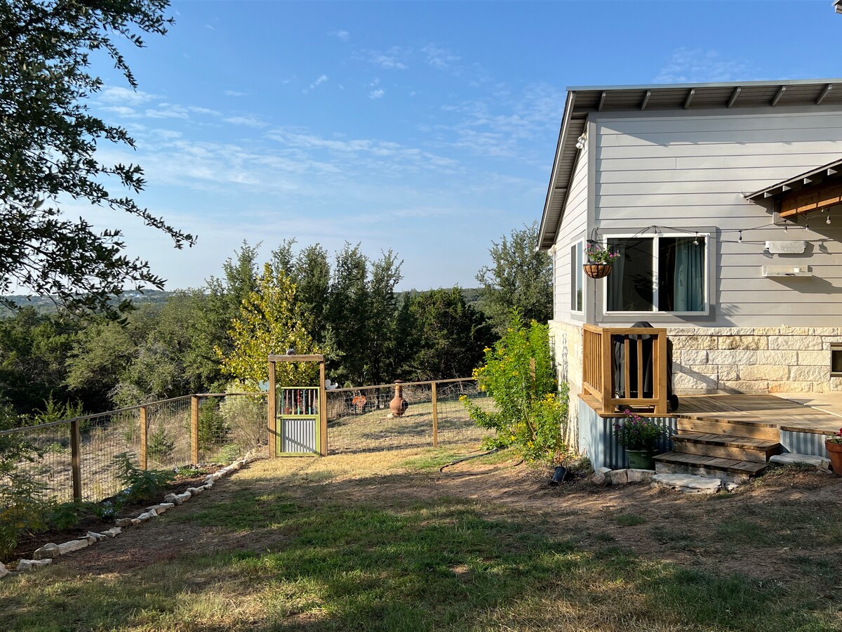¡Esta acogedora casita es un soplo de aire fresco! ¡Impresionantes vistas y a solo unos kilómetros de las bodegas y cervecerías locales! ¡A solo 30 minutos del centro de Austin si quieres explorar la ciudad! ¡Hay muchas rutas de senderismo, piscinas naturales y divertidos camiones de comida a la vuelta de la esquina! ¡Esta propiedad se encuentra en una tranquila comunidad cerrada de caballos! Sí... ¡hay caballos por todas partes! Recientemente redecorado y muy acogedor. Este es un lugar especial... ¡Estamos deseando recibirte pronto!