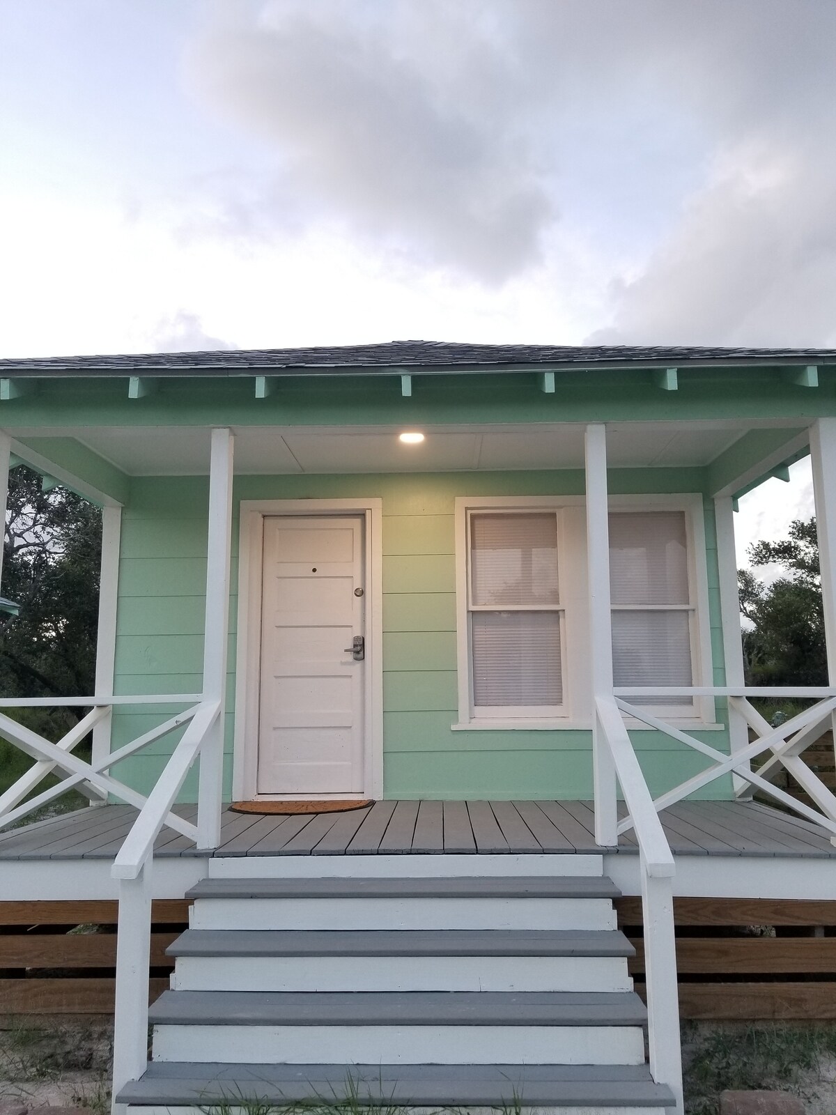 Bungalow privado, céntrico, cerca de muchas playas, perfecto para parejas, pescadores y amantes de la playa. La propiedad está cubierta de hermosos robles imponentes, palmeras, flores y un estanque koi. ¡Siéntete como en casa, explora toda la zona, disfruta sentándote en el columpio al final de la tarde y relájate! Se admiten mascotas por una tarifa única de 30 dólares. Pagadera a tu salida, que se puede dejar en el tarro de depósito «Tarifa por mascota». El bungalow está vallado para mayor privacidad, tiene un amplio estacionamiento, además de un patio privado y una parrilla.