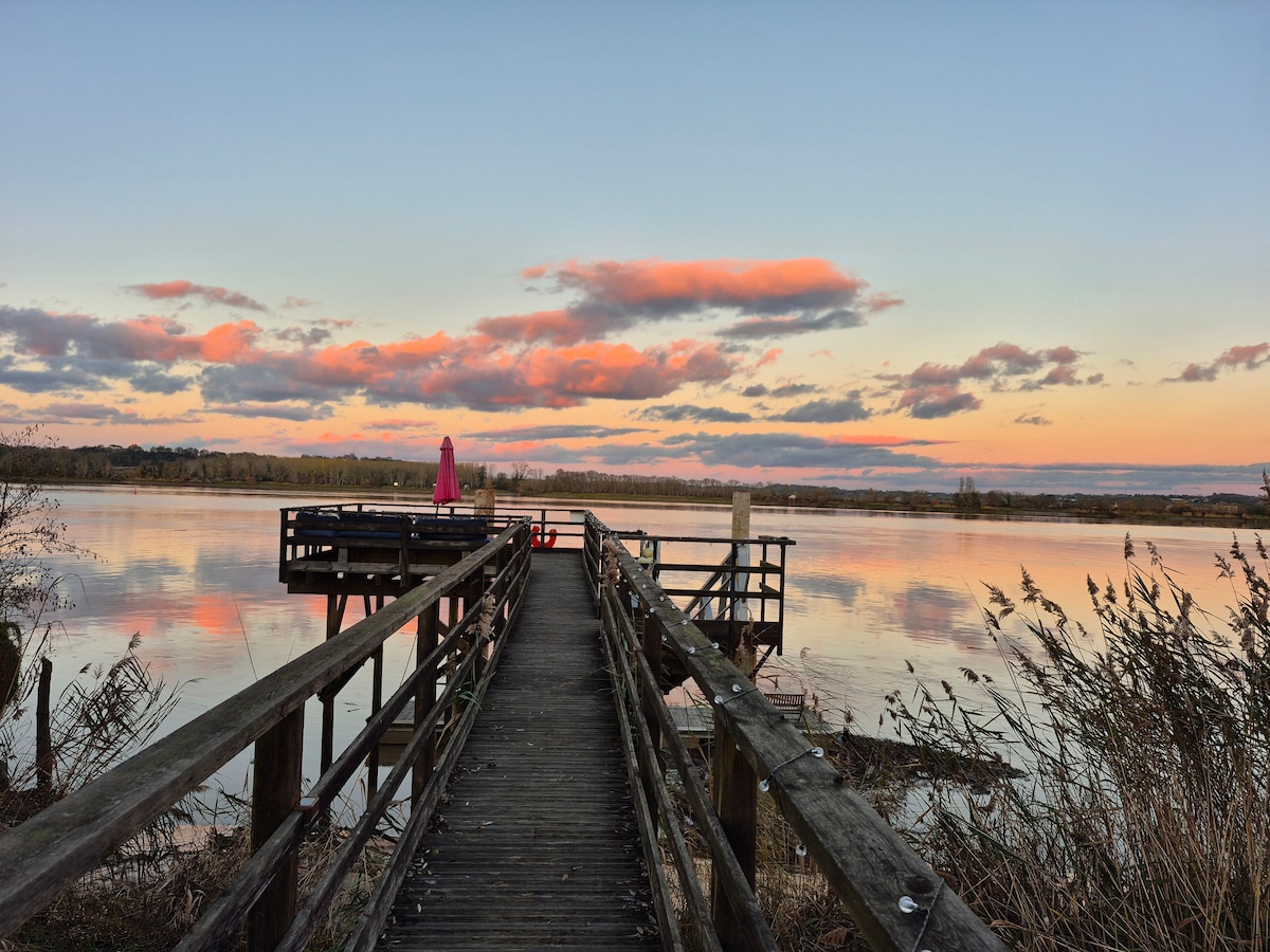 Casa flotante en lago privado a 20 km de Burdeos, ideal para una estadía en pareja, en familia o con amigos. Situada en el lago de Baurech, en el corazón de la naturaleza, esta casa flotante con terraza ofrece una vista excepcional del agua, una calma absoluta y un confort cuidado. Aquí, el tiempo se ralentiza: el lago como horizonte, la naturaleza como única vecina y la rara sensación de una estancia atemporal.