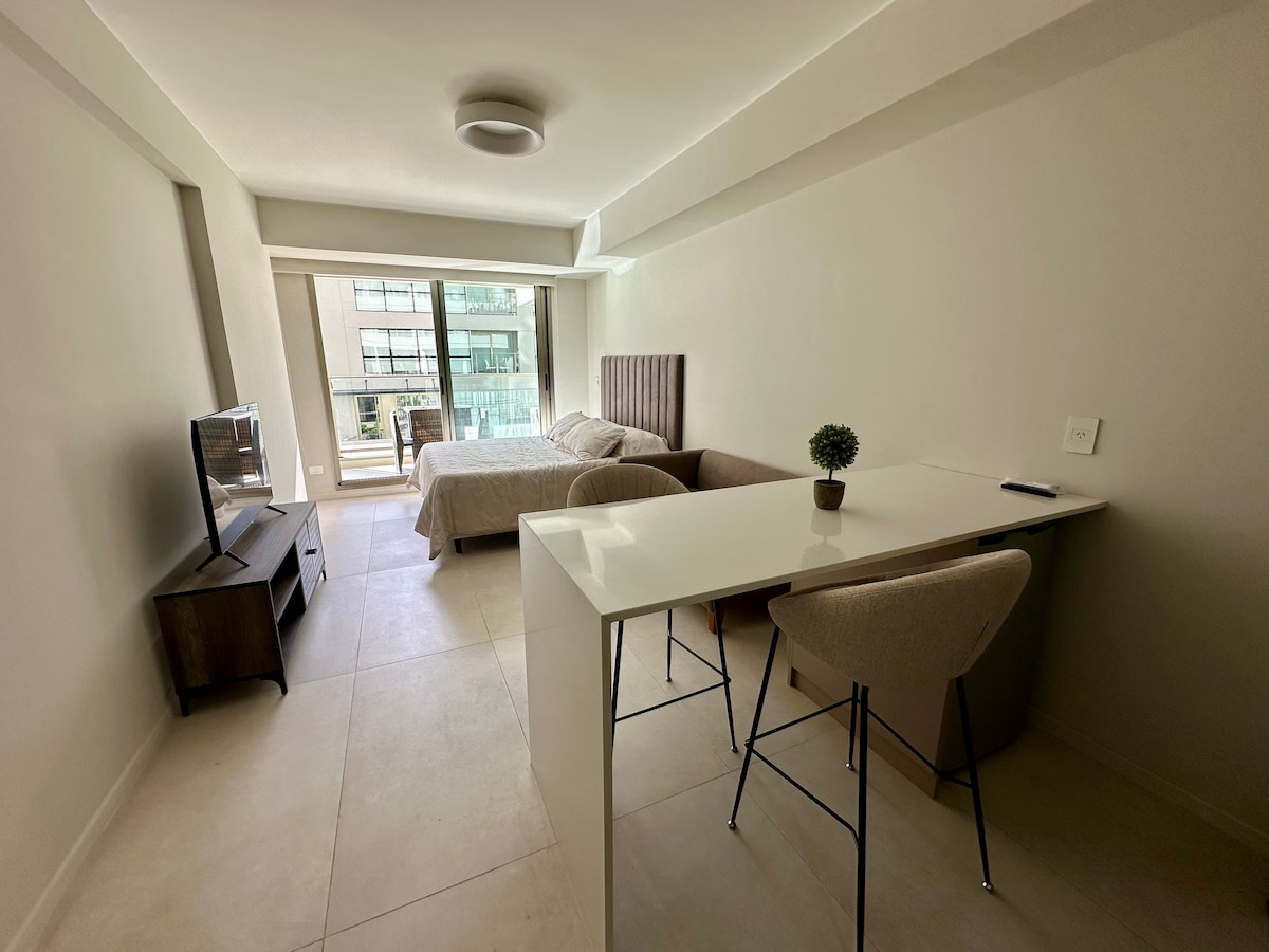 📍Studio premium en Núñez, moderno, cómodo y bien ambientado, ideal para 2 a 4 personas. ✈️ A minutos de Aeroparque, Barrio Chino y el corazón de Núñez. Ideal tanto para fans de River como para turistas o viajeros de negocios que buscan comodidad con estilo. 🌇 En el piso 15, la terraza compartida ofrece una experiencia única: piscina en temporada, parrilla, SUM y una vista impactante al Estadio Monumental, el río y la ciudad.