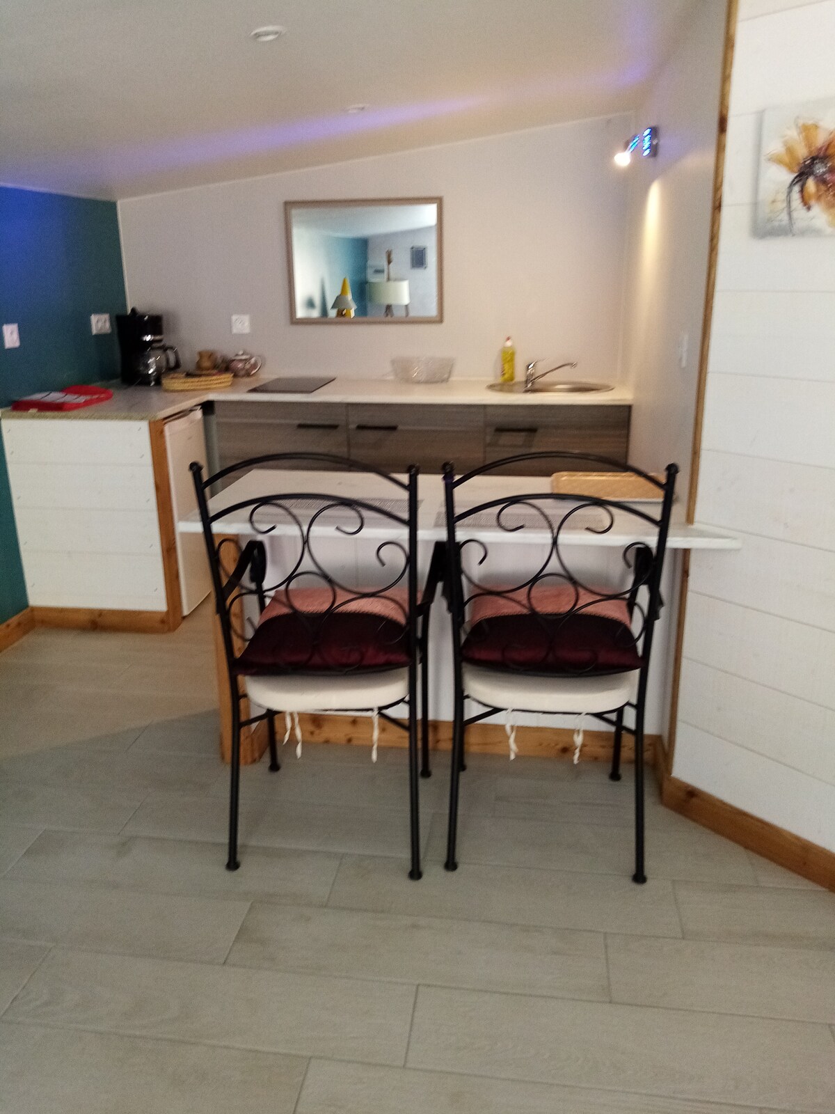 Une maisonnette et son petit jardin fleuri, rien que pour vous. Au rez-de-chaussée, un salon agrémenté d'une cuisine, frigo, four, micro-onde, 2 feux induction et tous les accessoires pour cuisiner vos repas + 1 table pour 4 pers. Une smart TV, un canapé lit 140x190 2 pers ). Une grande salle de douche avec sauna privatif, WC séparé. A l'étage, chambre mansardée avec lit double 160X200 ou séparable en 2 lits simples 80x200. Dans le jardin, table, chaises et des transats pour vous relaxer