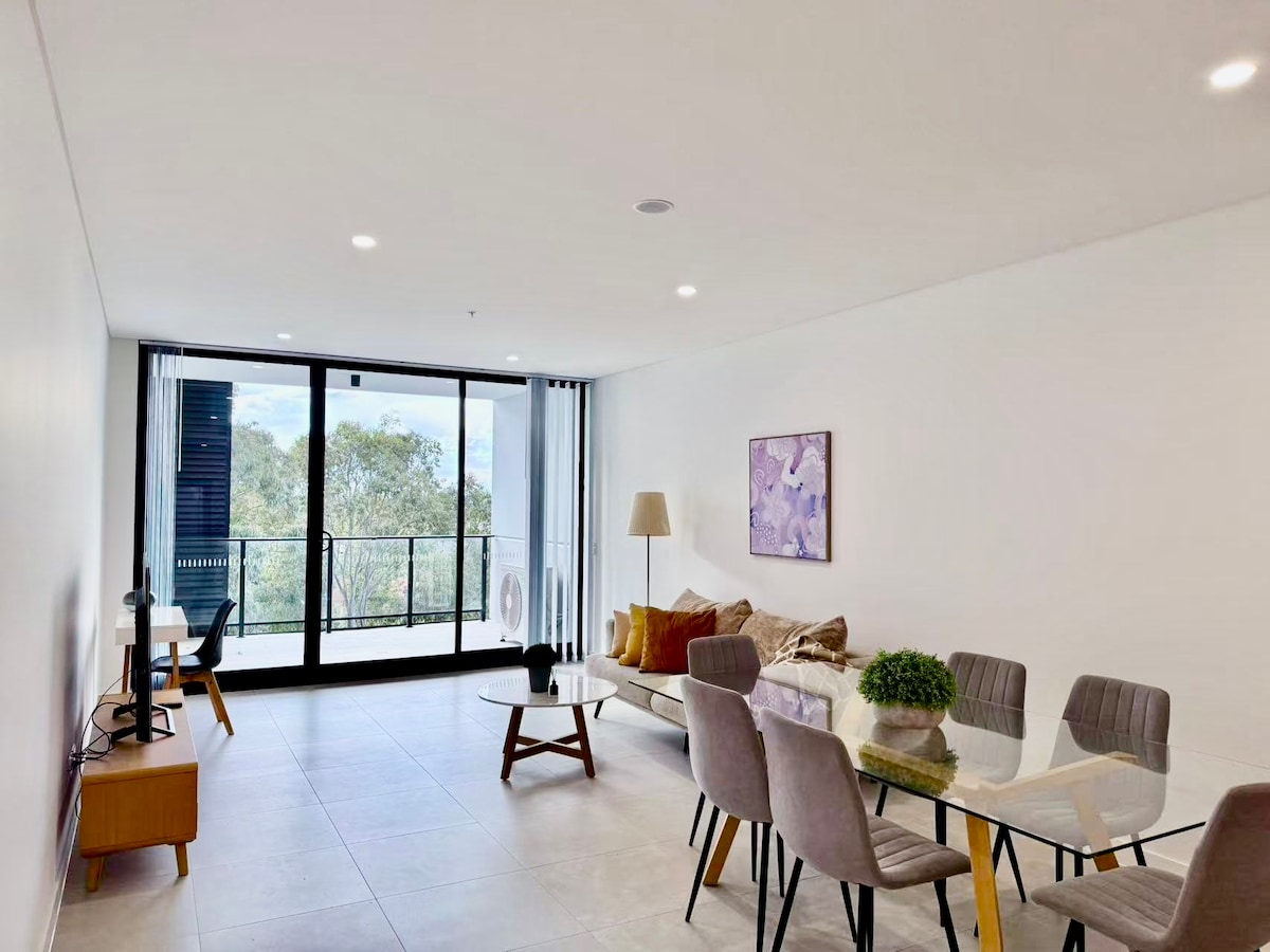 Es ideal para una escapada cerca de casa, una alternativa para teletrabajar o para familias. Apartamento de alta gama con vistas a la ciudad y 2 plazas de aparcamiento. Nivel alto con amplias vistas a la ciudad. Woolworths está abajo. A solo 5 minutos a pie de la estación de tren. 2 dormitorios, ambos con 2 camas tamaño queen y sofá cama extraíble. Ventanas con vistas a la hermosa ciudad de día y de noche. Piscina y gimnasio en el edificio. A poca distancia a pie del centro comercial Westfield, supermercados y más de 100 restaurantes. A 20 minutos en tren del centro financiero de Sídney.