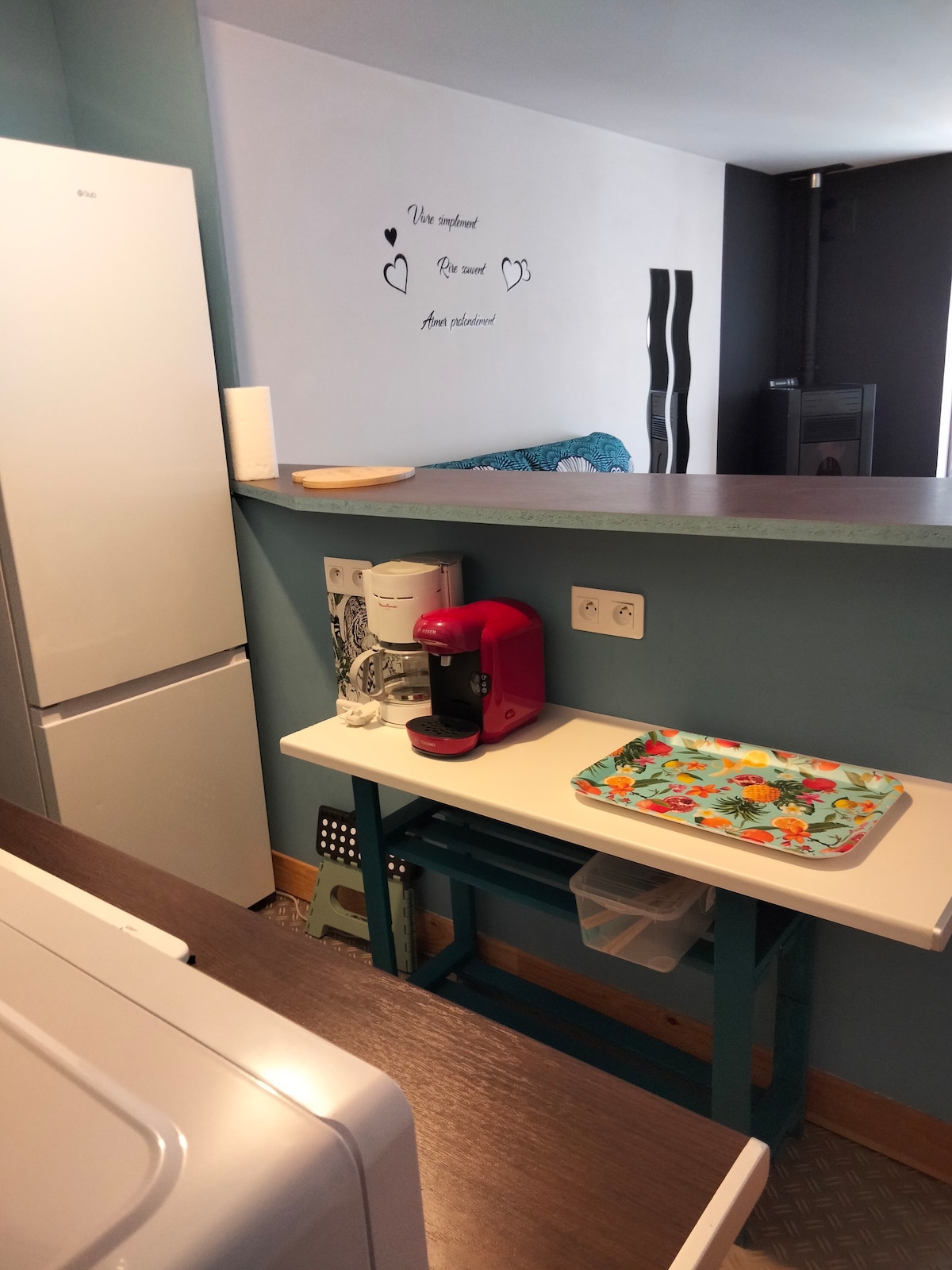 Situado a 10 minutos de Reims, nuestro apartamento consta de una gran sala de estar con cocina equipada, zona de comedor, sala de estar con sofá cama, televisión (pantalla plana) y WIFI. Una habitación equipada con una cama de 160 x 200 y un baño con inodoro separado. Además, se beneficia de un aparcamiento seguro (vehículo y bicicleta) dentro de nuestra propiedad. Por razones de salud y alergias, no se admiten mascotas en este alojamiento.