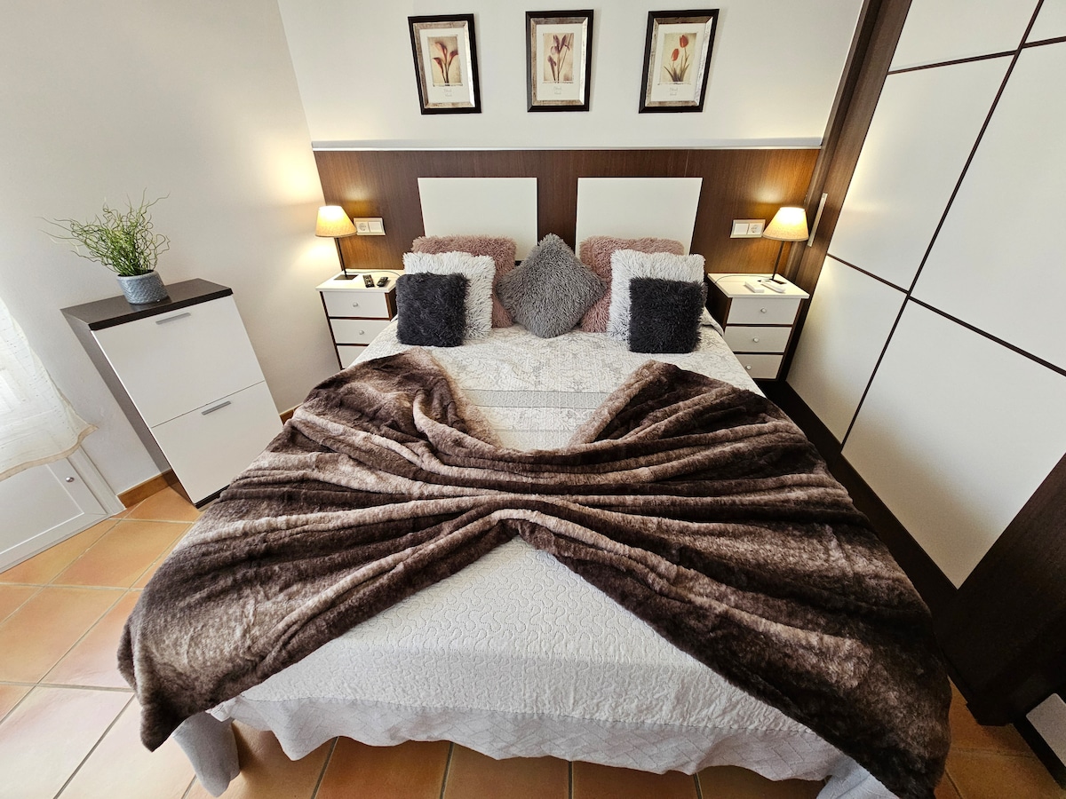 Disfruta de este moderno y encantador apartamento con 1 dormitorio, wifi gratuito, baño con bañera, cocina totalmente equipada, con lavavajillas y una amplia y soleada terraza con vistas. Decorado con todo lujo de detalles y equipado completamente para que tu estancia sea confortable y única. Muy luminoso y soleado, con unas increíbles vistas al parque acuático y a la Sierra . Parque acuático gratuíto para los huéspedes abierto sólo en verano. Piscina pequeña abierta también en invierno.