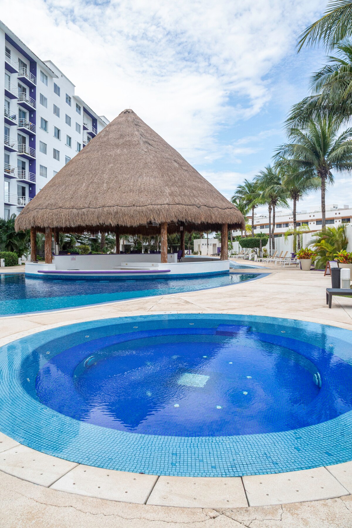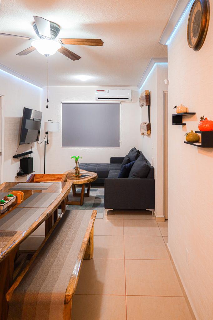 Disfruta Cancún en este departamento cómodo, seguro y bien ubicado, ideal para descansar después de un día en la playa 🌴 Cuenta con aire acondicionado, WiFi y alberca 🏊♂️ Espacio para hasta 6 personas 👥 Cuna disponible bajo solicitud 👶 Ubicado junto a Plazas Outlet, a 10 min caminando de supermercados y con acceso rápido a la Zona Hotelera y playas.