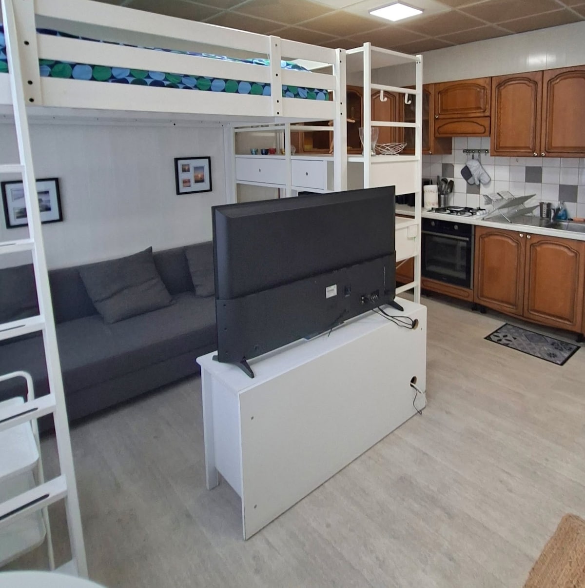 En bord de mer, à 2 pas des commerces jusqu'à 4 pers + 1 bébé Chambre : lit 160cm x 190cm Lit bébé disponible sur demande Linge de lit non fournis Le petit plus : Profitez d'une vue mer depuis le lit ! Salon / Salle à manger : canapé-lit de 140cm x 190cm, Smart TV Cuisine équipée : frigo, gazinière, four électrique, micro-onde, cafetière Senseo, bouilloire, vaisselle complète Location linge de lit + serviettes : 15 € 2 pers / 20 € 4 pers Animaux acceptés