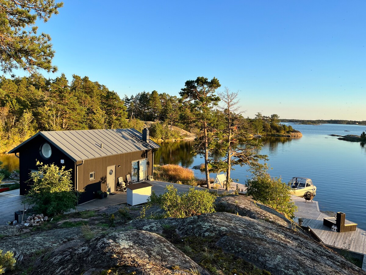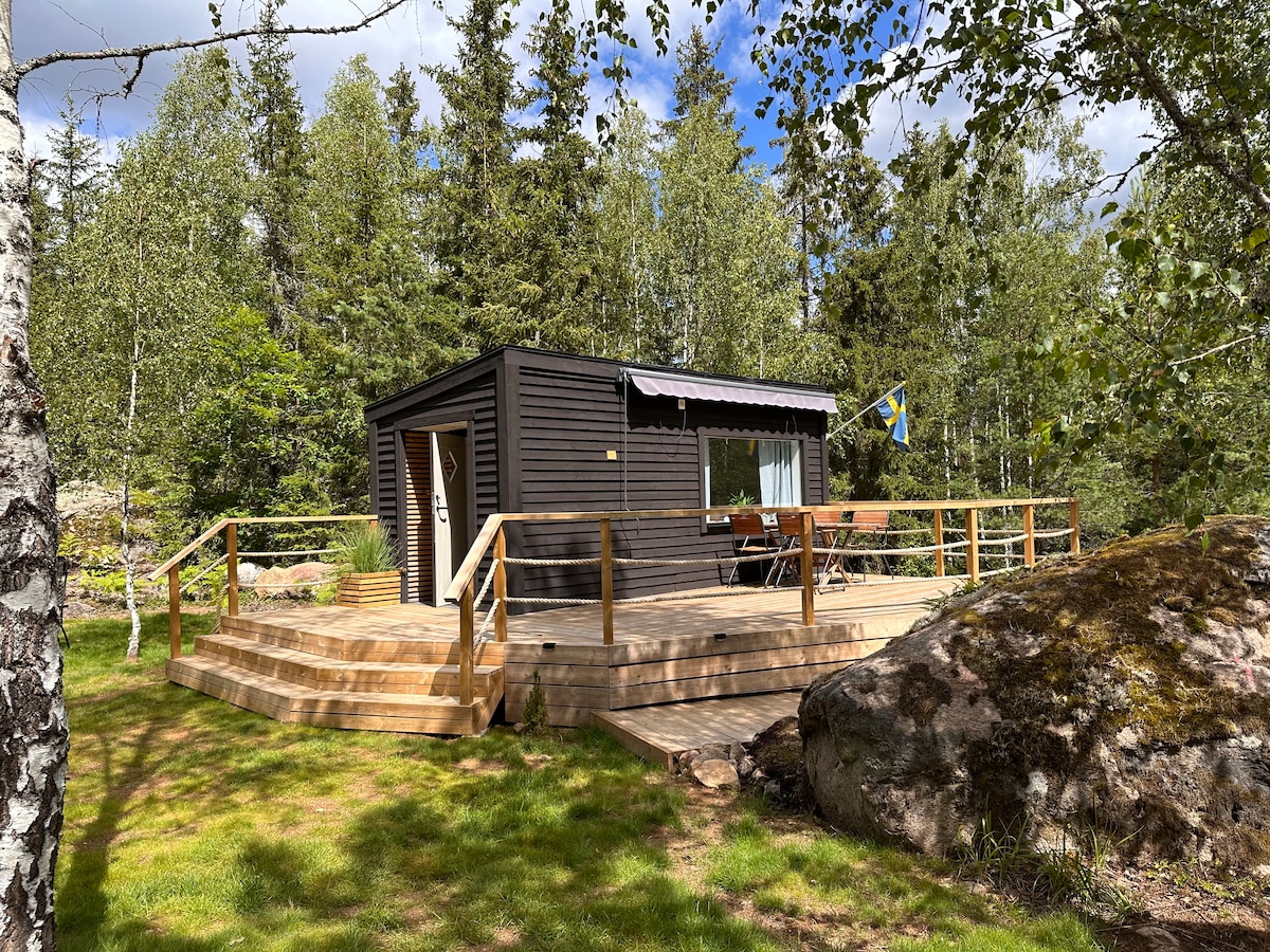 Stuga i skogen med sjö & egen ö