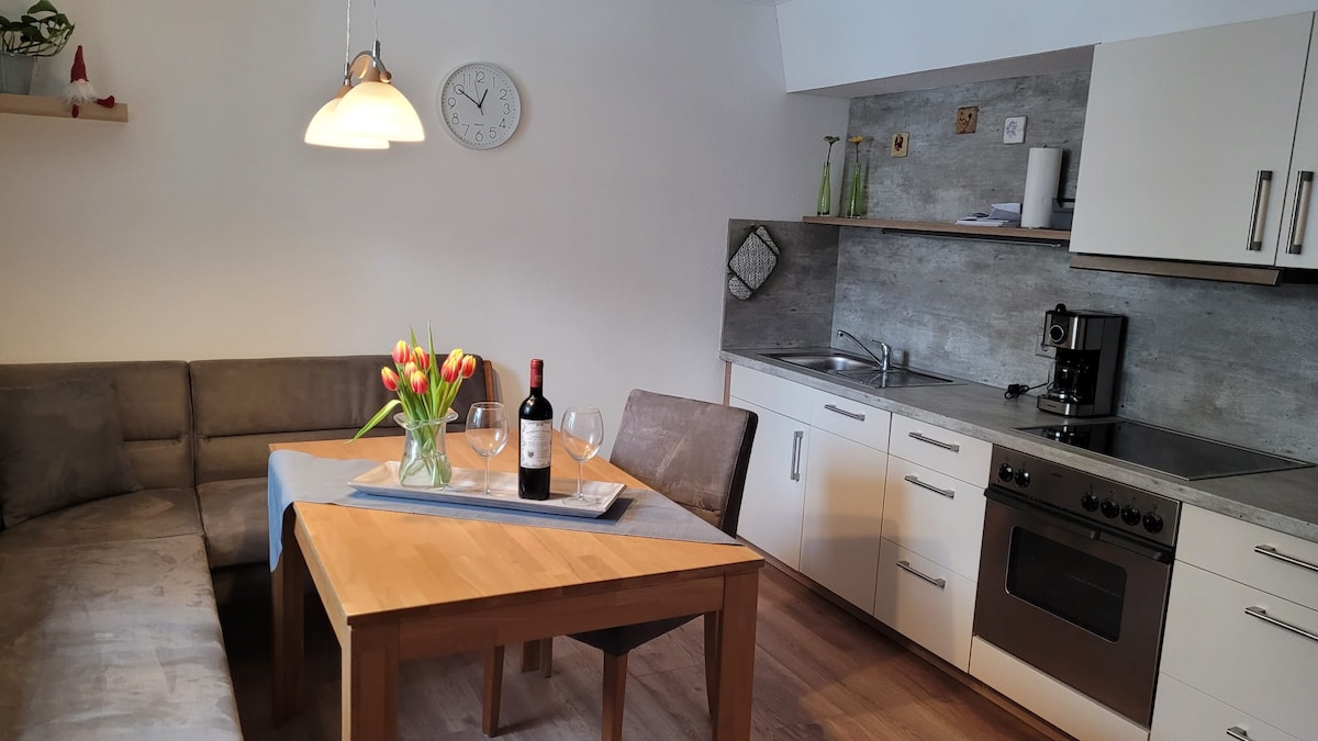 El apartamento está recién reformado y se encuentra en el centro histórico del pueblo de Oberholzklau. He equipado el apartamento con un lugar de trabajo completo (segundo monitor). Así que si tienes que trabajar parcialmente desde allí y te gusta estar en la naturaleza, entonces estás en el lugar correcto. Por supuesto, el apartamento también es adecuado para relajarse y disfrutar de un poco de romanticismo rural.