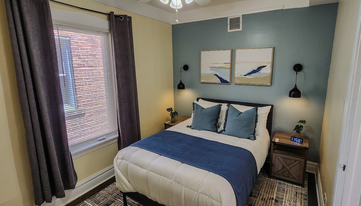 Este alojamiento único tiene personalidad propia. Disfruta de este hermoso y acogedor estudio con toques modernos y una sala de estar bien amueblada, una pequeña cocina con mininevera y microondas para recalentar algo rápido antes de dirigirte a la ciudad, un baño completo con ducha de efecto lluvia y un rociador de mano para ayudarte a relajarte después de un largo día. TV de pantalla plana con dispositivo de streaming Xfinity para que puedas conectar tus cuentas y disfrutar de tus programas y películas favoritos para una estancia tranquila.
