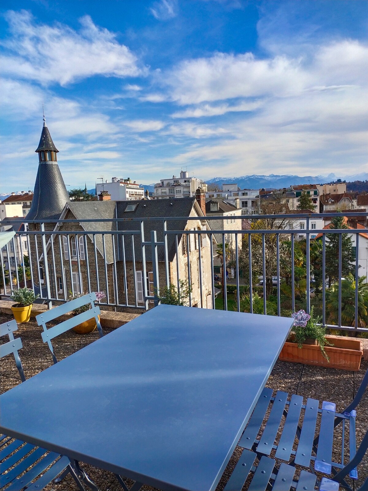 Encantador apartamento con vistas a los Pirineos. A dos pasos del centro de la ciudad, del castillo y de su parque. Amplio salón con su pantalla de televisión gigante. Espacio de oficina independiente. Lugar tranquilo y recargable. Supermercado Carrefour Market a 3 min andando. Panadería a 200 metros. Numerosos restaurantes accesibles caminando. Lugares de estacionamiento cercanos. Entre la montaña y el mar a la 1:15, un campo que da ganas de oxigenarse.