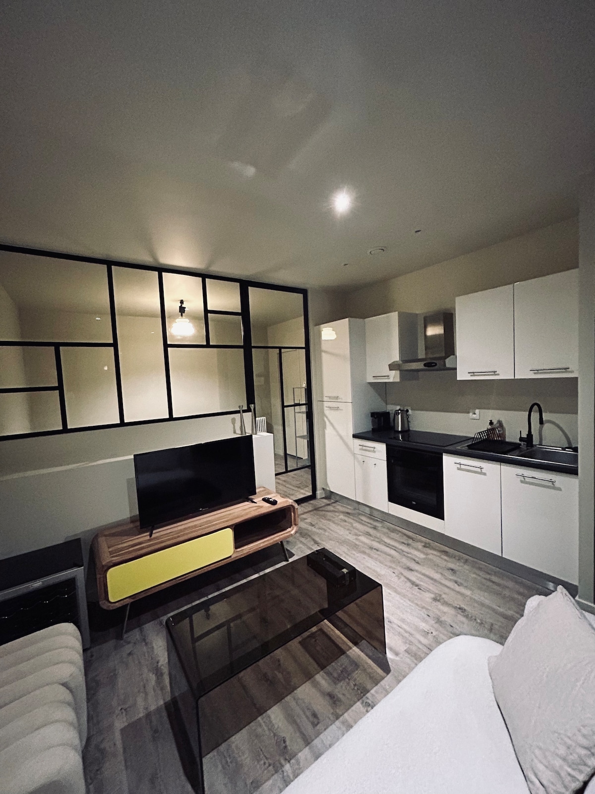 Bienvenue dans notre appartement chaleureux et spacieux de 37 m², idéalement situé pour un séjour confortable et élégant. Parfait pour les couples, les voyageurs d'affaires, ou une petite famille, cet appartement offre tout ce dont vous avez besoin pour un séjour mémorable. Grand canapé confortable qui peut également servir de lit d'appoint en cas de besoin. - Cuisine équipée - Un lit de 160x200 - Douche, toilette et toutes les commodités nécessaires. - Une place de parking