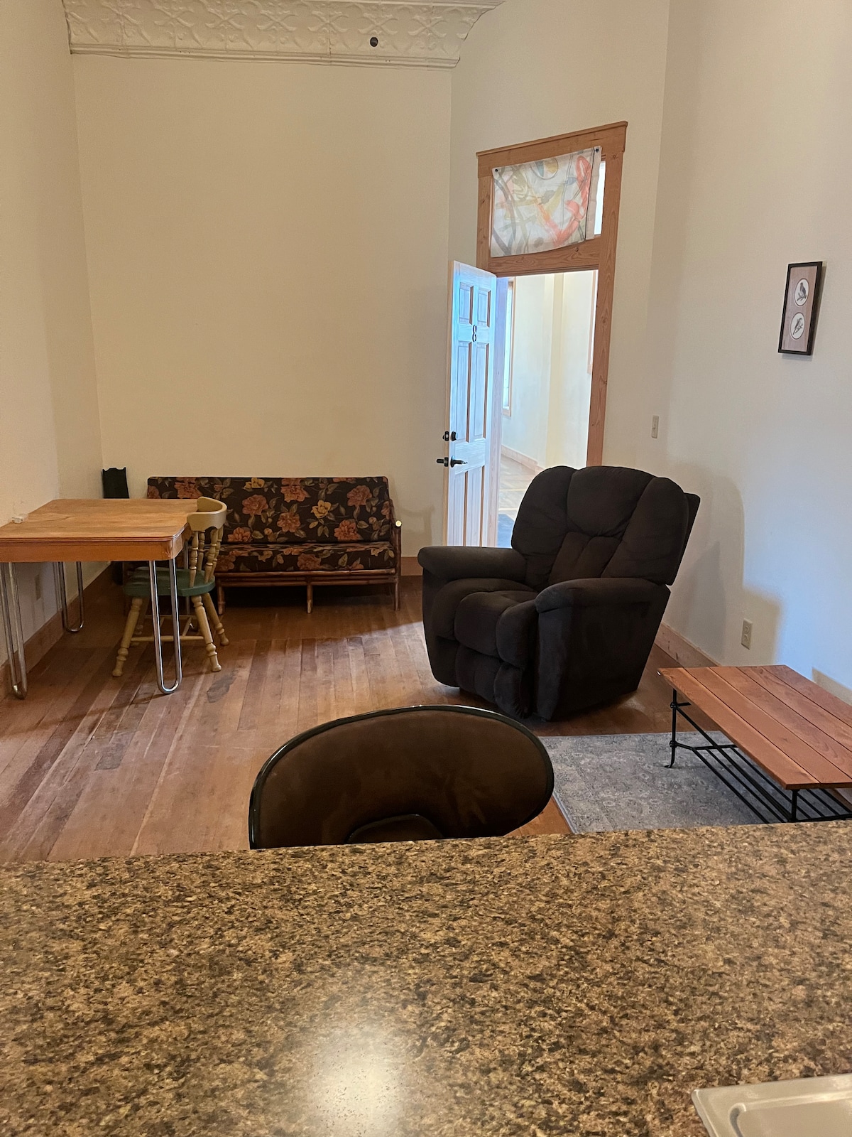 Studio apartment at the edge of town not far from interstate. Full kitchen and tankless hot water. 2 memory foam beds, one is a trundle twin so please let me know if you’re going to need it set up. Large outdoor space for truck and trailer parking, let us know if you’ll need the larger parking area. Beautiful views! Less than a mile to bar and grill, gas station, bakery, coffee kiosk and just a few miles from the Big Horn Mountains. No TV, but there is WiFi! Everything is as seen in photos.