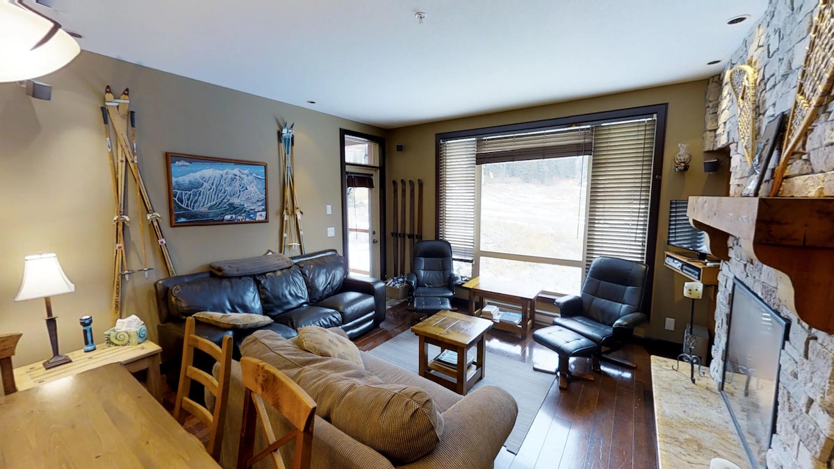 Disfruta de la mejor escapada de esquí en nuestro espacioso apartamento de 2 dormitorios y 1 baño completo en la planta baja del edificio Ravens en Big White. Disfruta de acceso directo a las pistas de esquí y relájate en tu jacuzzi privado justo enfrente de la ubicación de esquí. Hay chimenea de gas, cocina grande y comedor, perfecto para reuniones familiares. A pocos pasos de Happy Valley y del teleférico, esta ubicación es ideal para una familia de cuatro personas que buscan aventura y relajación. Este es un nuevo anuncio, ¡consulta mis más de 750 reseñas de 4,9 en Airbnb!