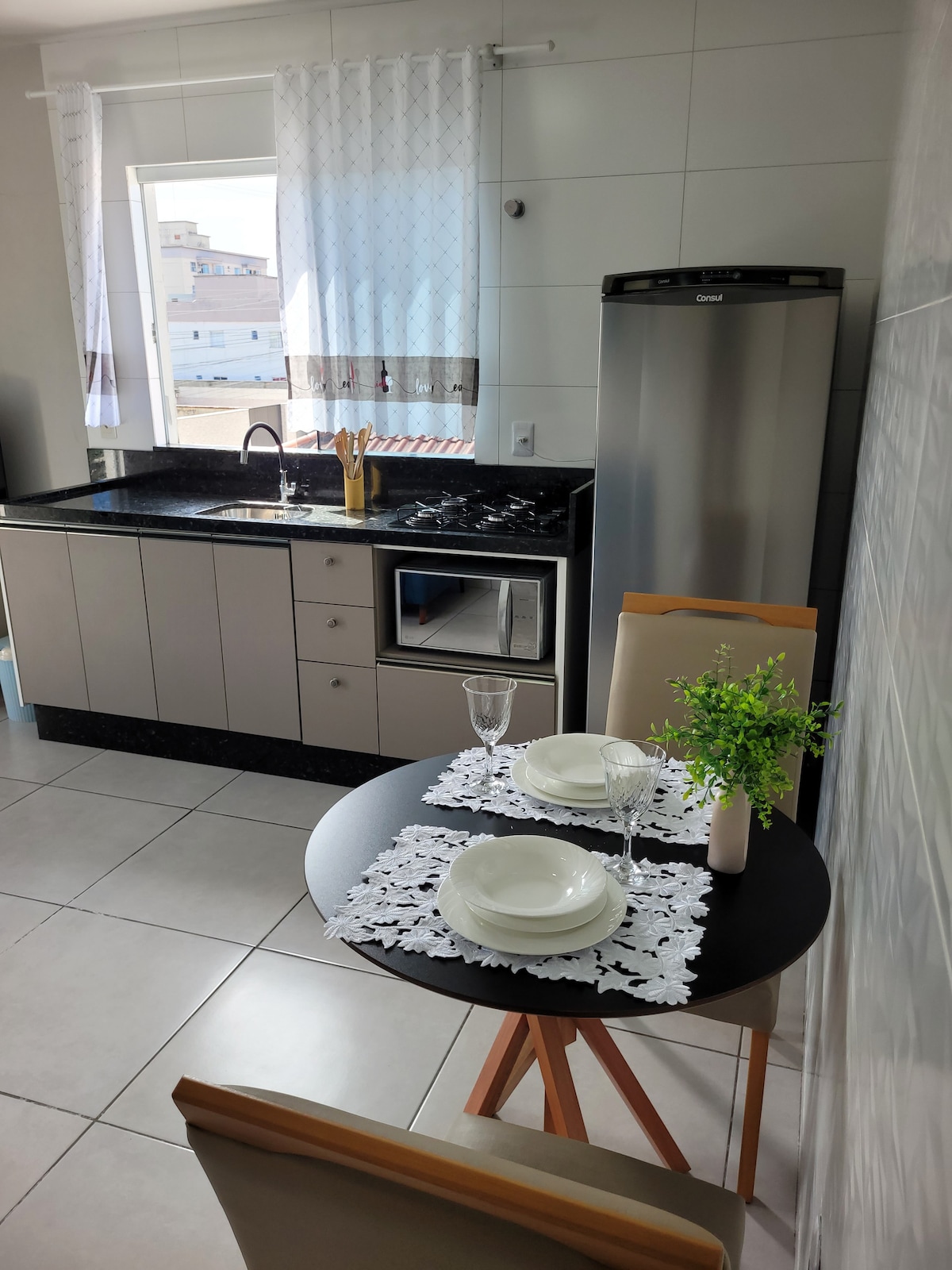 Edícula com uma cozinha super espaçosa, com churrasqueira e fogão a lenha. Sala junto com a cozinha, com sofá e TV. Um quarto com suíte. Para até 2 hóspedes, cama de casal . Localizada em areias de baixo , bairro super tranquilo e perto da natureza com muitos verdes. Praia do Antenor é a mais próxima a 10 minutos. Caminho das belas praias de Governador Celso Ramos. Próximo tem supermercado, padarias , farmácia, comércio no geral.