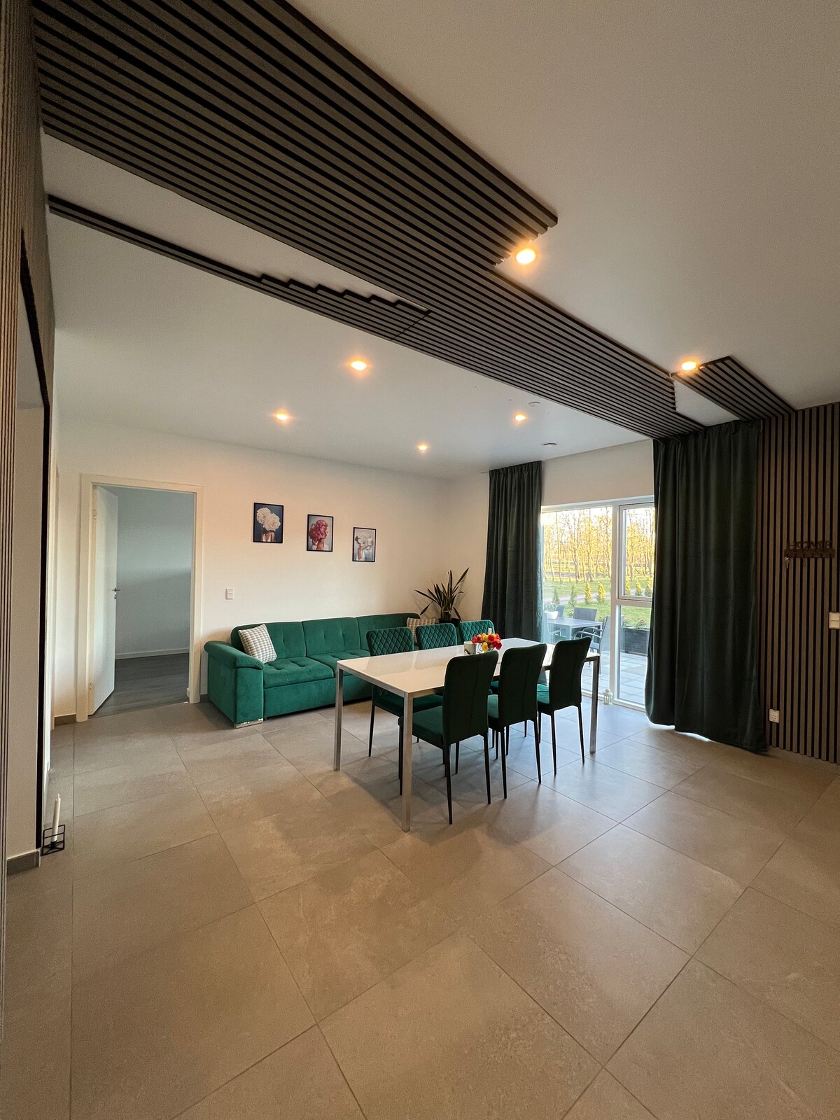 Lille rummelig ny renoveret lejlighed på 80 kvm2. Ligger i en lille by med kort til indkøbsmuligheder, spisested og lade stander. Legepladser, boldbane og stisystemer. Boligen indeholder indgang og køkkenalrum i et. 2 værelser og bad med vaskemaskine og tørretumbler. 2 parkerings plaser. 35 km til større byer.