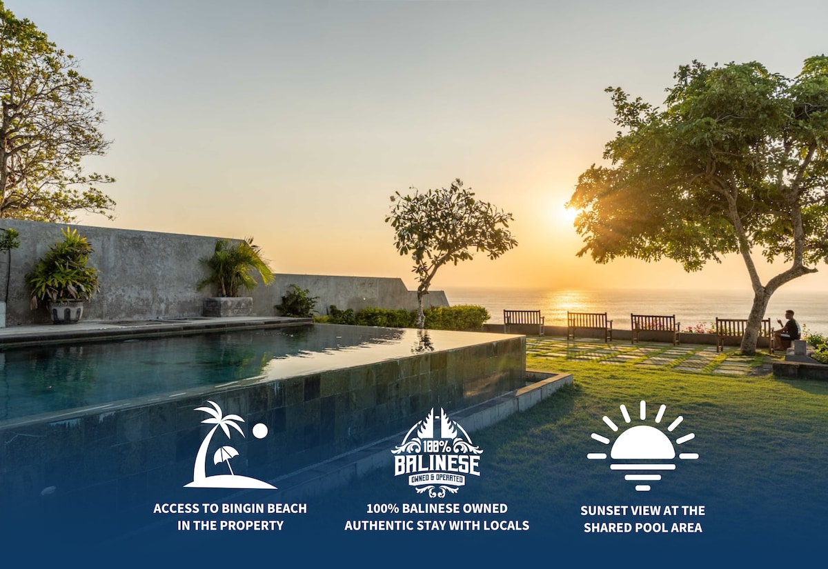Enjoy a bright, sunlit stay in Bingin Beach Village, with a friendly Balinese family next door adding a local touch. Shops, cafés, and the beach are just a 10-minute walk away, making this home an easy and inviting base for exploring Bingin at your own pace. Key Features: - Your private bedroom and ensuite bathroom - Working space inside - Shared kitchen & dining area - Spacious green lawn and pool - WiFi speed up to 27 Mbps - Shared refrigerator