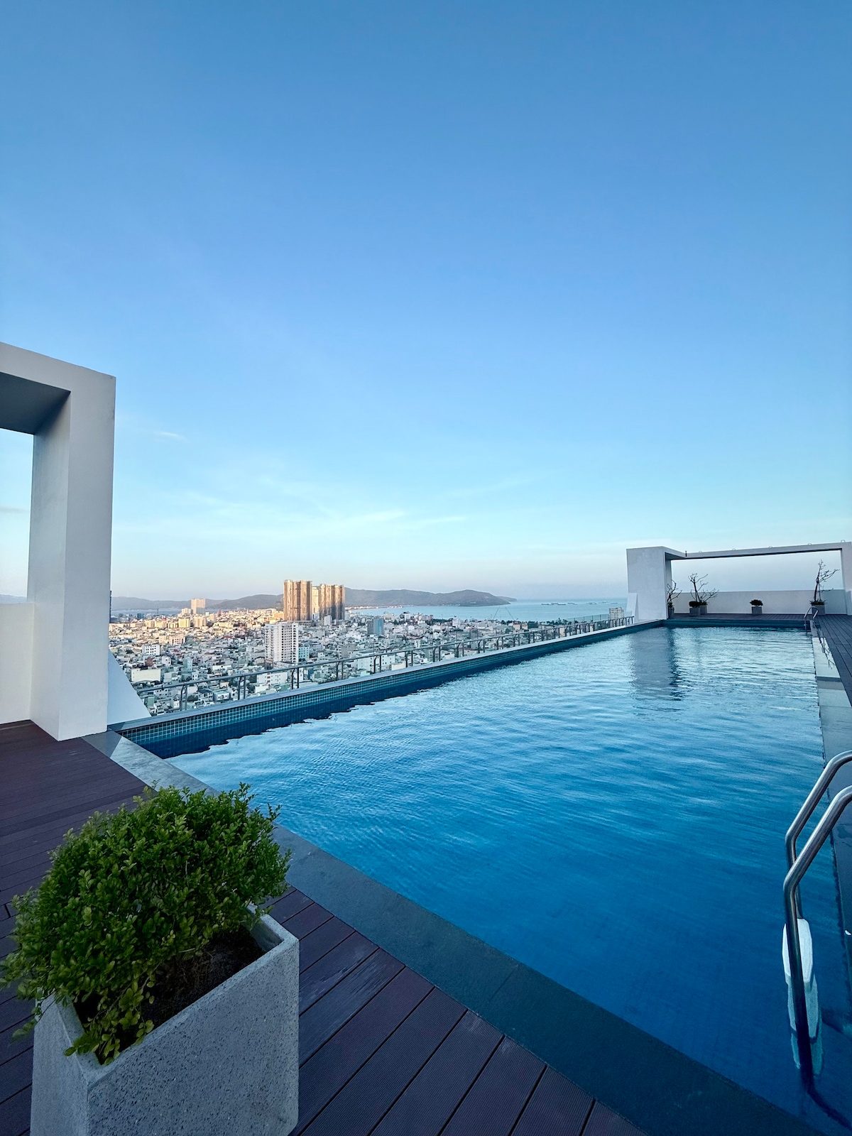 Enjoy a stylish experience at this prime location. This modern apartment is just steps away from stunning Quy Nhon beach with cafes, local restaurants and bars conveniently located right outside. It’s a perfect spot for those who want to enjoy all that Quy Nhon has to offer. Featuring 2 comfortable beds, a sleek bathroom, and a balcony offering breathtaking views of the city and beach. This apartment is perfect for families, couples, or friends traveling together.