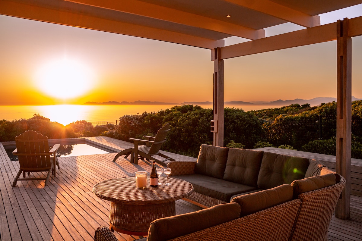 Moderna casa familiar frente a la playa con vistas impresionantes, situada en el hermoso pueblo costero de De Kelders. A solo 2 horas de Ciudad del Cabo, esta lujosa casa te ofrecerá un descanso relajante de la vida cotidiana. Nuestra casa también incluye una moderna fuente de alimentación de respaldo y continúa funcionando normalmente en caso de un corte de energía.