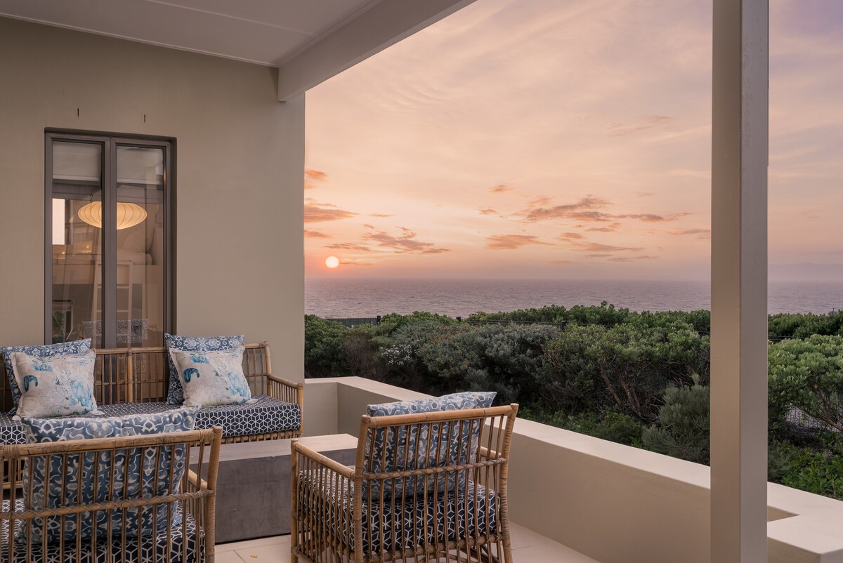 Esta casa de vacaciones frente al mar, bellamente renovada, está situada entre Gansbaai y De Kelders en la región de Overberg, en Cabo Occidental. Con vistas a la bahía Walker, la generosa terraza elevada permite disfrutar de las mejores vistas al mar y de cerca del avistamiento de ballenas de agosto a noviembre de cada año. Hay dos zonas de barbacoa (braai), una en el interior y otra al aire libre en la terraza con vistas al mar. Disfruta de vistas ininterrumpidas al mar desde el salón y despierta con los relajantes sonidos del océano en los dos dormitorios frente al mar.