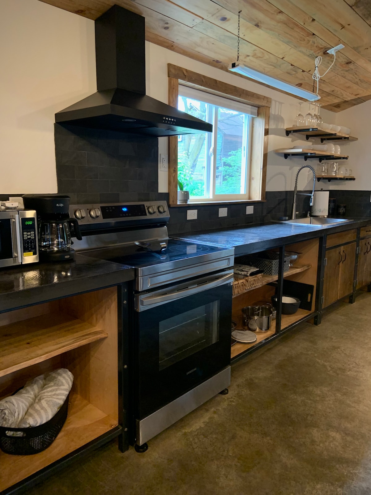 Apartamento muy singular en el centro de Otsego, a poca distancia a pie de tiendas, restaurantes y bares. Recientemente renovado, este espacio se encuentra sobre la bóveda de un banco de la época de 1920 con un toque rústico/industrial. Cuenta con azulejos de cerámica rústicos en la cocina, el baño y el área de trabajo, suelos de bambú en el salón/dormitorio, encimeras de granito, salpicadero de azulejos, fregaderos de cobre y ducha de azulejos con puerta de vidrio. TV inteligente de pantalla plana de 65 pulgadas, chimenea eléctrica, wifi, aire acondicionado/calefacción central y escritorio de bloque de carnicero incorporado.