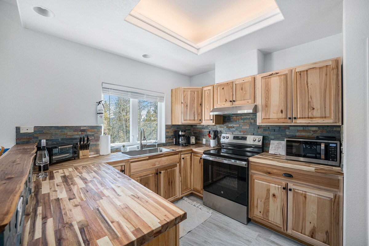 Take a moment to breathe the fresh mountain air of Gilpin County while cozying up to a wood-burning fireplace and experiencing the feeling of being at home. 10mins Golden Gate Park 20mins from historical Black Hawk & Central City's casinos, restaurants & nightlife. 15mins to the small and magical town of Nederland that's home to the Frozen Dead Guy, Carousel of Happiness and an extra 5mins to Eldora Ski Resort. Whatever adventure you're looking for you're sure to find in our neck of the woods!