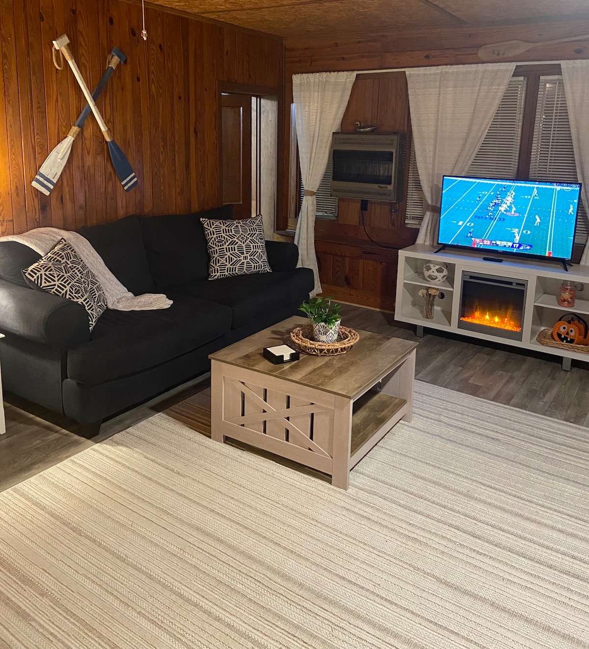 ¿Buscas una escapada de una parada? Con esta casa de 3 dormitorios, 1,5 baños y ducha al aire libre, puedes mantenerte activo con el uso de kayaks, bicicletas, tablas de remo, tablas de Cornhole y baloncesto. Aunque no está frente al mar, puedes ir caminando al lago en minutos para disfrutar de un baño en el muelle. Relájate en el jacuzzi bajo las estrellas y las luces en el oasis del patio trasero. Mira una película sentado junto al fuego o simplemente disfruta de noches tranquilas en el gran porche. ¡Esta casa de campo ofrece actividades, relajación y diversión para todos!