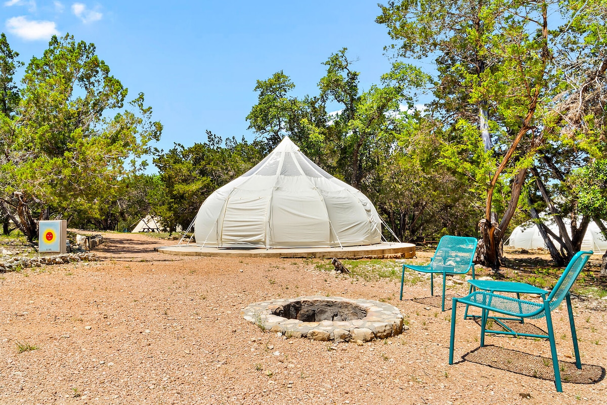El sitio de glamping con una cama tamaño queen y un NUEVO Mini-Split es perfecto para una escapada llena de diversión y aventura en cualquier clima. Con tu propia barbacoa, mesa de picnic y acceso a la cocina comunitaria, baños y lavandería, seguro que te sentirás cómodo mientras disfrutas de un retiro de regreso a la naturaleza. Disfruta del paisaje salvaje en Hill Country de Texas, a solo 1,5 millas del Parque Estatal Pedernales Falls. A la gente le encanta venir aquí para observar las estrellas, hacer senderismo o disfrutar de las cervecerías y destilerías locales cercanas.