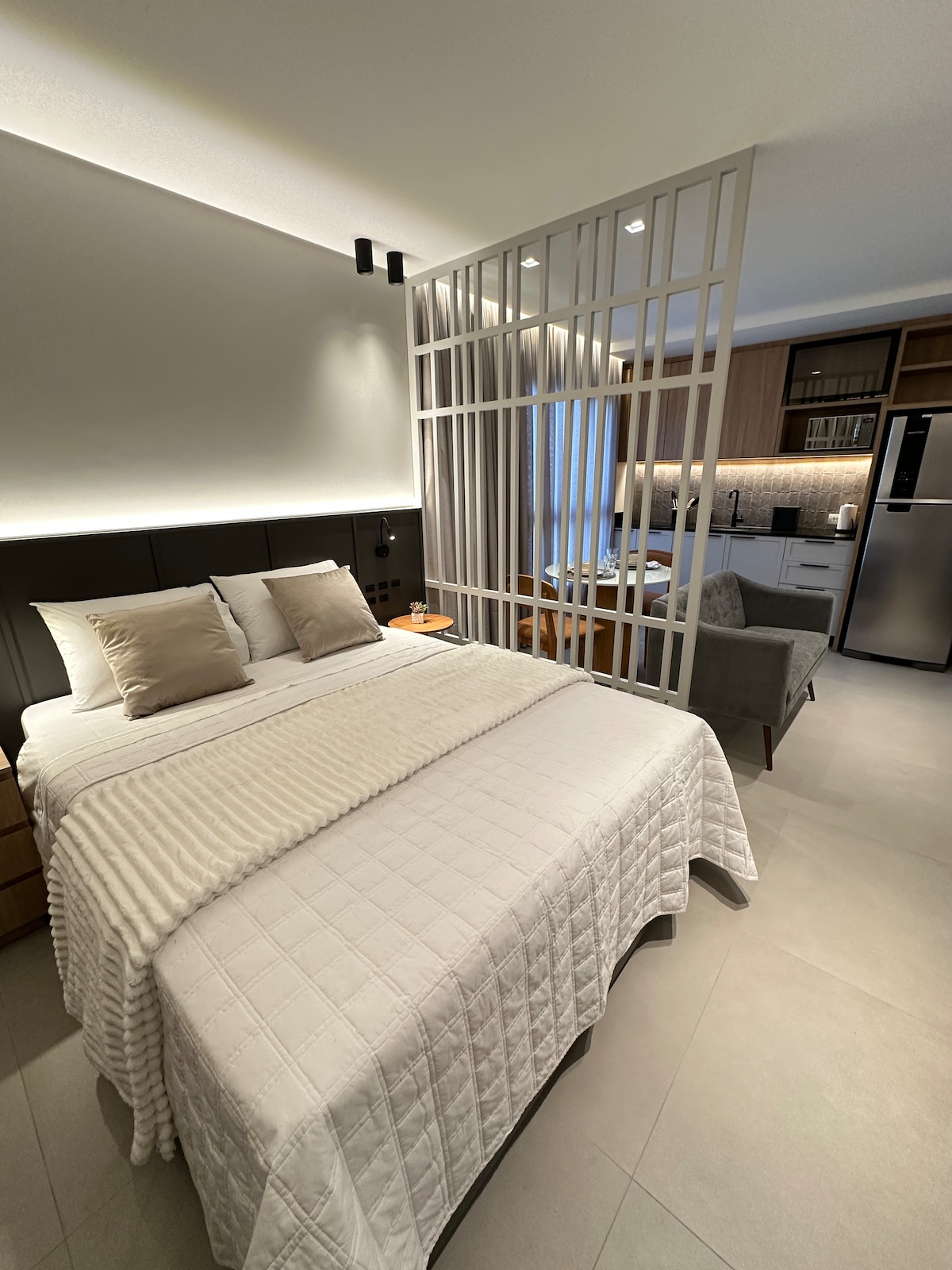 Curta uma experiência elegante neste lugar bem-localizado, ao lado do centro, próximo a vila germânica . Espaço novo e moderno, pensado para atender famílias, viajantes a negócios, turistas e estudantes. Este loft conta com espaço confortável para 4 pessoas, sendo uma cama e um sofá cama. Totalmente equipado para seu conforto e cheio de estilo. Conte também a com coworking top, lavanderia 24hrs, academia e área externa. Estacionamento privativo incluso na estadia.