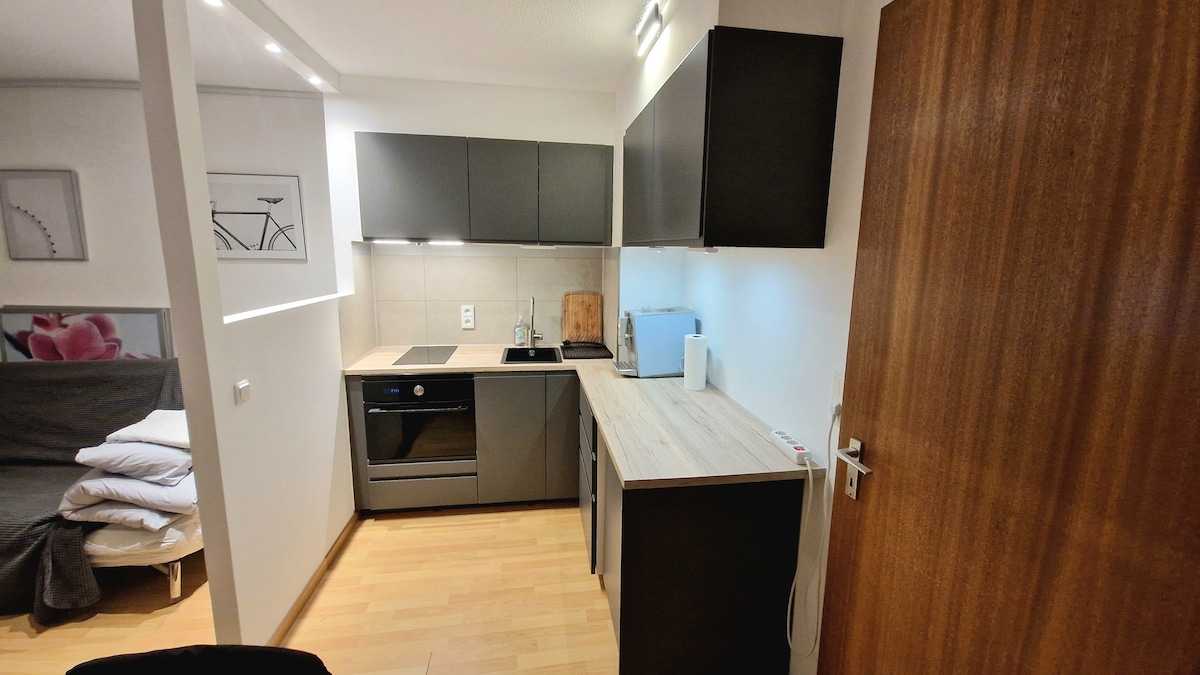 Lujoso apartamento con acceso privado, baño y cocina americana. En la primera planta con estudio 2; estudio 3 en el ático. En las inmediaciones hay un supermercado, panadería, farmacia, droguería, tienda de alimentos orgánicos y alquiler de coches. Parada de autobús a 2 minutos, autobuses directos a BMW, Allianzarena (U Kieferngarten), MOC, MTC. Transporte público: Schwabing 20 min., centro de la ciudad 30 min., Oktoberfest 37 min. Aeropuerto (MVV 60 min/coche 25). Perfecto para coches; a 5 min de la A99 Salzburgo/Núremberg/Stuttgart/Lindau. Bicicletas gratuitas disponibles.