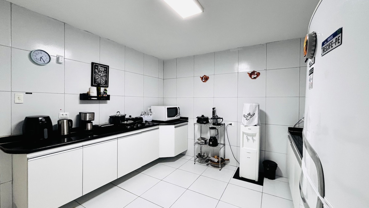 ¡Apartamento completo y acogedor en una ubicación privilegiada! Alójate cerca de la playa de Boa Viagem, el aeropuerto y Shopping Recife. En el piso encontrarás: • Aire acondicionado, TV e internet wifi • Freidora de aire, cafetera, placa de cocina y utensilios de cocina • Conjunto completo: cama, mesa y baño • Secador de pelo y plancha disponibles. Estructura del edificio: • Mini mercado • Restaurante con desayuno, comida y cena (precios separados) • Piscina, gimnasio y lavandería • Estacionamiento cubierto incluido