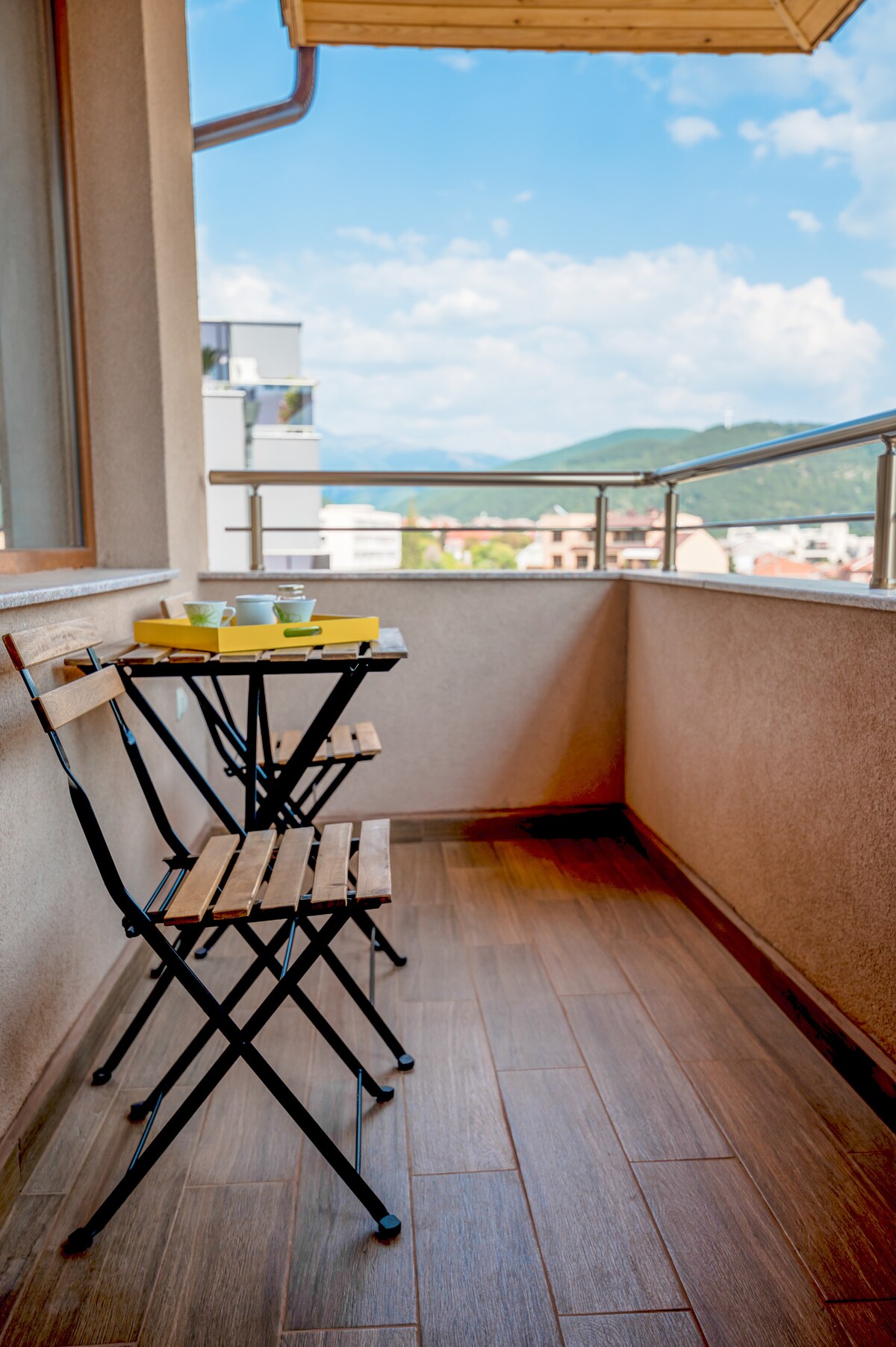 El apartamento "Japón" en Blagoevgrad ofrece un confort moderno inspirado en la estética japonesa. Cuenta con una sala de estar acogedora, cocina totalmente equipada, un dormitorio cómodo y un baño elegante. Los huéspedes disfrutan de wifi gratuito, aire acondicionado y un balcón con vistas a la ciudad. Ubicado en el centro, a pocos pasos de lugares de interés, tiendas y restaurantes, es perfecto para una estancia tranquila y cómoda.