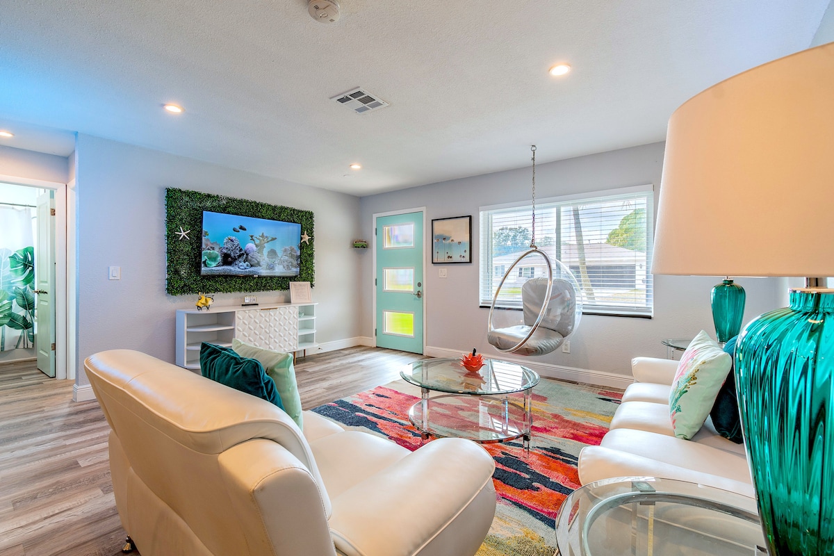 Bienvenido a «The Comfy Cove», donde el lujo se une a la comodidad. Ubicado en la más prestigiosa zona intercostera, nuestro refugio de 3 dormitorios ofrece elegancia a solo 3 minutos de la playa y a 2 minutos de las mejores tiendas y restaurantes de Seminole. Disfruta de una cama tamaño king californiana, 3 camas tamaño queen, amplio estacionamiento y un patio privado. Perfecto para días de playa, pesca, golf o bodas, con servicios que incluyen internet de alta velocidad, wifi, Netflix y una estación de trabajo dedicada. Experimenta el pináculo de la comodidad y la sofisticación.