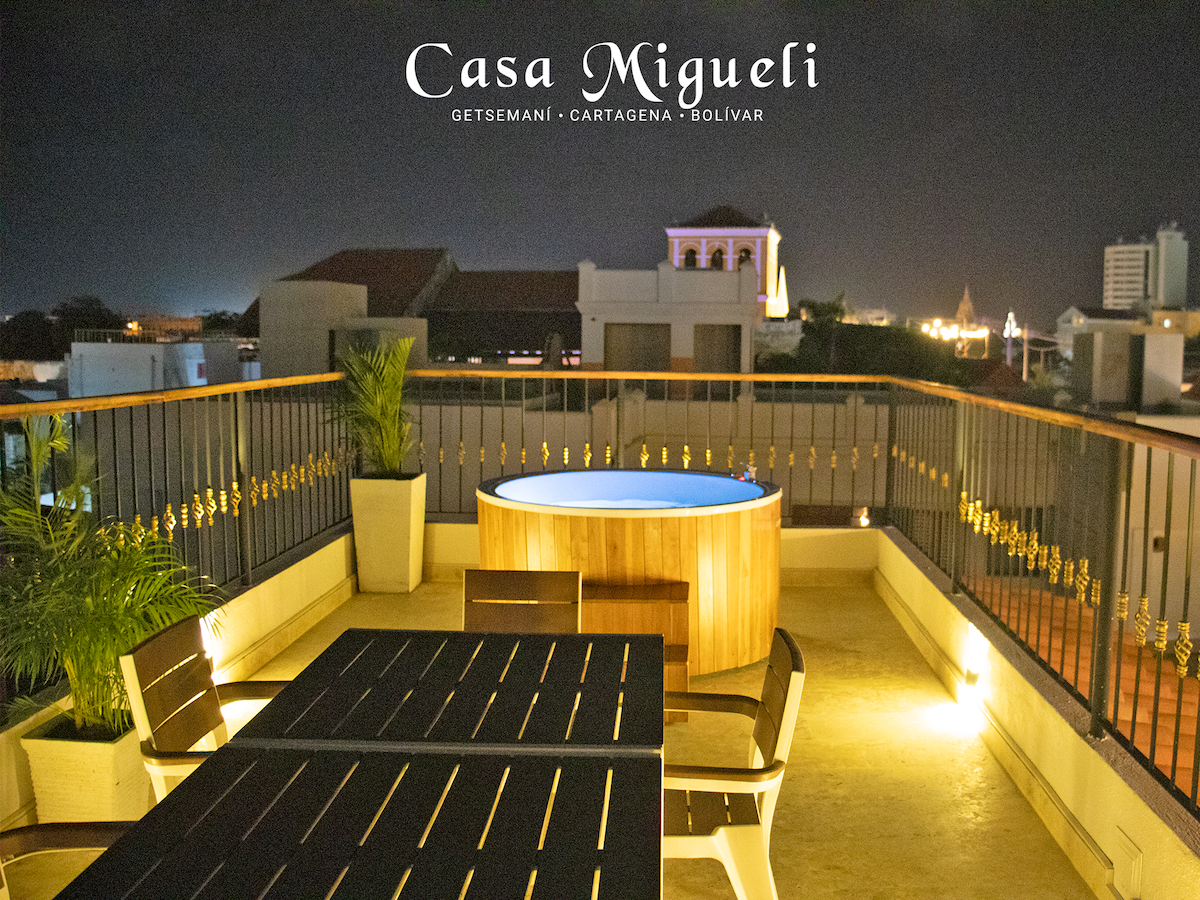 Magnífica casa del siglo XVIII recién restaurada por uno de los más reconocidos arquitectos y diseñadores de nuestro país. La casa de 385 m2 cuenta con 4 pisos, 5 habitaciones, varias salas de estar, mirador con vista de 360 grados y una de las mejores piscinas elevadas del centro histórico. Gran ubicación a dos cuadras del Muelle de los Pegasos, la Plaza de la Media Luna y el Proyecto Hotel Four Seasons en Getsemaní. Incluye un desayuno americano. Camarera Cocinera Vigilante de 6 pm a 6 am.