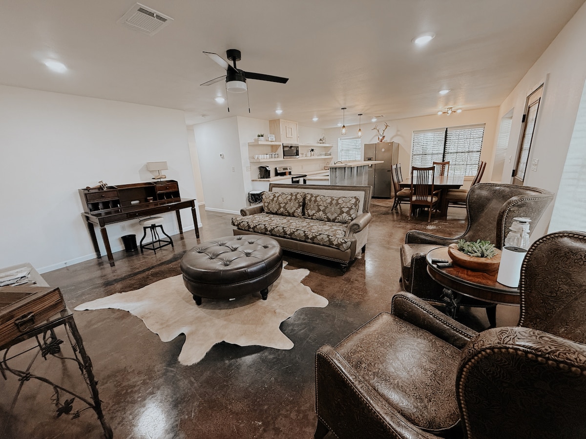 Studio Z es una estancia industrial Art Déco ubicada en un antiguo bosquecillo familiar de nueces. Retírese a su estudio, a solo unos minutos del entretenimiento, la comida, el lago Texoma y a solo 2 millas del casino Choctaw. Disfrute de una cocina completa, una cama King, un porche privado, una entrada privada al estudio debajo de nuestra casa y una propiedad cerrada y segura. Preparado para una cita nocturna, ideal para trabajo remoto, concierto en Choctaw o para relajarse. wifi RÁPIDO