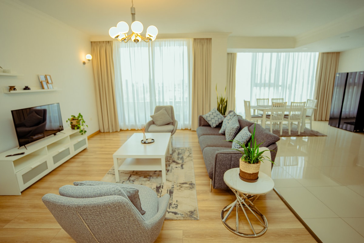 Bienvenido a nuestro lujoso apartamento de 3 dormitorios y 2 baños, perfectamente ubicado cerca de la sede de la Unión Africana y cerca de todas las principales atracciones. Este departamento nuevo e impecable ofrece una decoración moderna, dormitorios cómodos y servicios totalmente equipados. Disfruta de acceso gratuito al gimnasio y al spa en el mismo edificio. Con wifi de alta velocidad, una cocina completa y una sala de estar abierta, este es el refugio perfecto tanto para viajeros de negocios como de placer. ¡Experimenta la máxima comodidad y conveniencia!