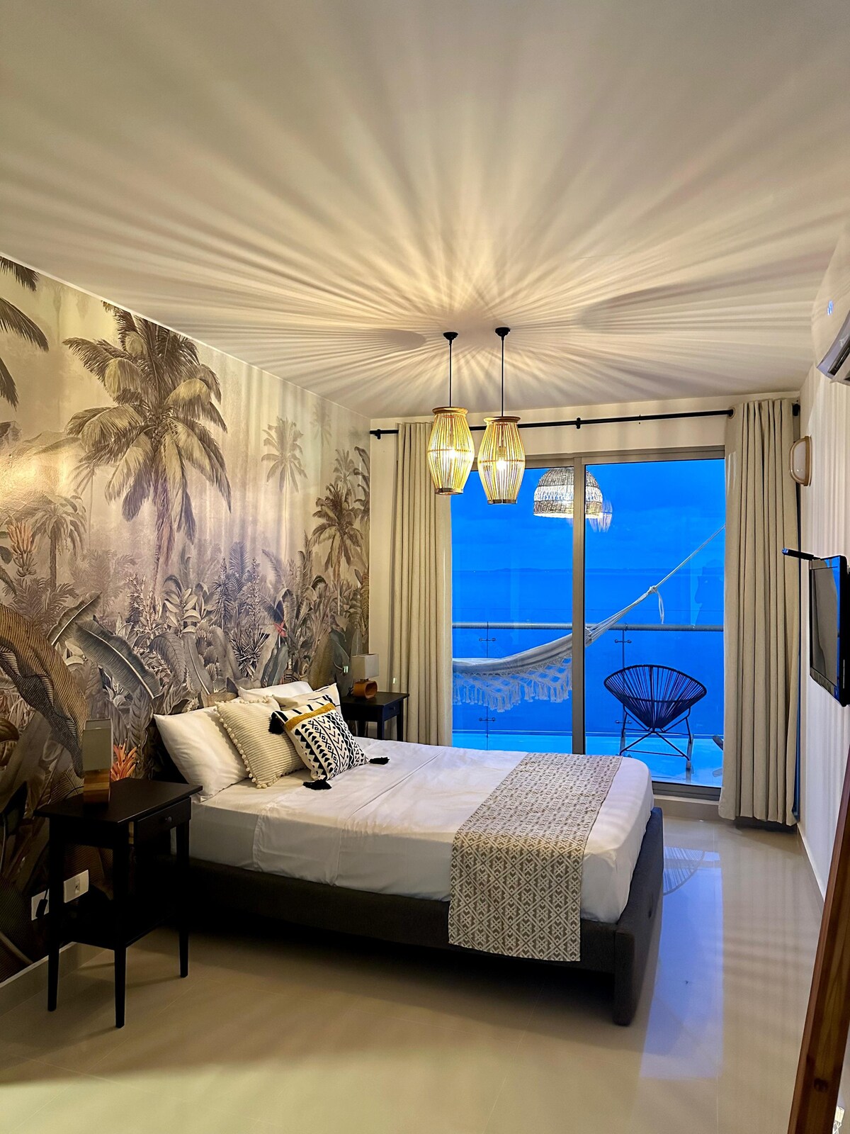 ✨ Bienvenido a tu refugio en Cartagena: un apartamento de lujo en piso alto frente al mar, con dos balcones privados y vista panorámica 180° al Caribe y la bahía. Diseñado para tu confort, ofrece sala moderna con ventanales, cocina equipada, WiFi rápido y check-in digital. Relájate en la piscina infinita, disfruta el bar o entrena en el gym con vista al mar. En Bocagrande, a pasos de la playa y cerca de la ciudad amurallada, tu estadía será inolvidable. 🌊🌴