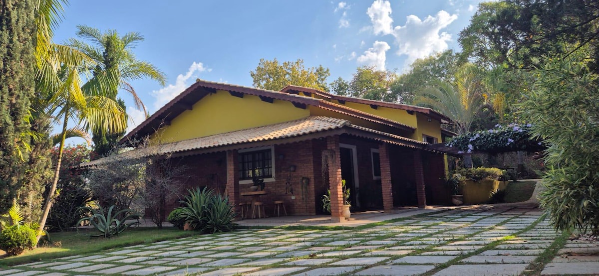 Hermosa casa en medio del valle, con mucha comodidad y privacidad. Proyecto audaz de Luiz Bueno en 1980, que con visión futurista y creatividad, dio vida a una casa amplia y super moderna con una decoración rústica y llena de personalidad. Ambiente con barbacoa, horno de pizza, piscina, sauna, ducha natural, lago y terraza de madera. Lugar rodeado de naturaleza exuberante. Con 4 suites, 3 habitaciones con baño compartido y lavabo, todos sus invitados estarán muy cómodos.