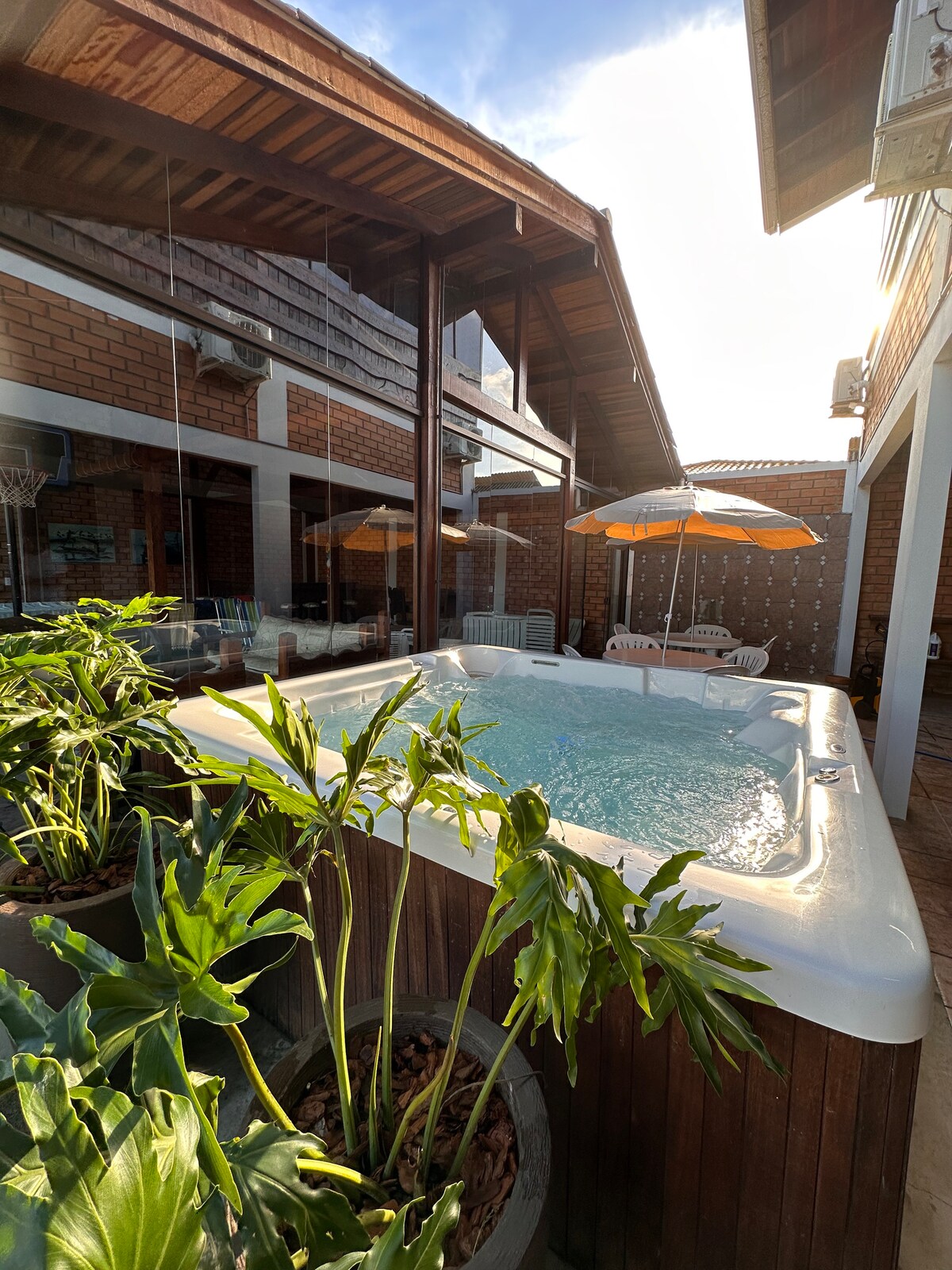 Casa de playa en Bombinhas, jacuzzi para 2, chimenea 3 dormitorios grandes con aire acondicionado dividido Calle Calçada y con carril bici a 450 metros del mar 3 baños Sala Estar Jantar c Aire acondicionado, Chimeneas y SMARTV Netflix / YouTube 1 cuarto de cama doble Suite de 1 dormitorio (4 m x 3 m) en el segundo piso con cama doble 1 dormitorio (5 m x 3 m) 2.ª planta Cama doble y dos camas individuales 2 colchones individuales Cocina completa. Garagem 2 Coches Trabaja al lado de la casa. Puede causar algunas molestias entre semana