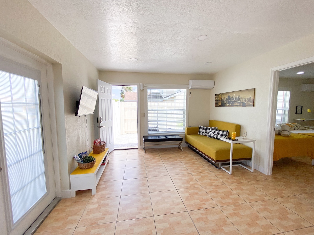 El apartamento está adosado a la casa principal, pero tiene su propia entrada. El estudio proporcionará a los huéspedes total privacidad La cocina está equipada con una configuración totalmente amueblada; incluyendo ollas, horno, nevera y más. Se proporciona una cama de tamaño completo. El baño tendrá toallas, jabón, champú, acondicionador y secador de pelo. Otras comodidades incluyen TV con Netflix, wifi, Alexa, unidad de aire acondicionado de ventana, estacionamiento justo enfrente y un barrio tranquilo. Si tiene alguna pregunta o inquietud, puede ponerse en contacto conmigo.