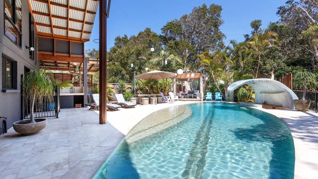 Surfea, nada y toma el sol en Juddy's@Boomerang Esta casa de surf frente a la playa ofrece la mejor escapada con una piscina única para tablas de surf, bar en la piscina e increíble espacio de entretenimiento al aire libre. A pocos pasos de North Boomerang Beach, perfecta para familias y grupos. Esta increíble casa está rodeada de hermosas playas, lagos y parques nacionales, todos muy cerca. Boomerang Beach está patrullada en las vacaciones de verano y Semana Santa y es una de las mejores playas de surf en esta impresionante zona.