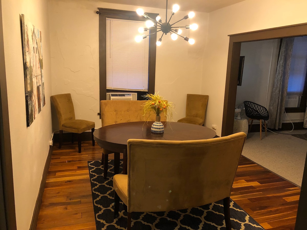 Te damos la bienvenida a Natural Nesting Grounds: un encantador oasis de 2 dormitorios y 1 baño que es perfecto para tus viajes conscientes de la salud. Esta unidad dúplex privada está llena de carácter y servicios cuidados para hacerte sentir en casa. Entra y te recibirán pisos de madera originales, techos altos y abundante luz natural. Cada habitación cuenta con lujosos asientos y detalles acogedores, lo que crea un espacio sereno para relajarse. ¡A 2 cuadras del centro de la ciudad, a 10 minutos de Seven Oaks y a 13 millas del estado de Iowa!