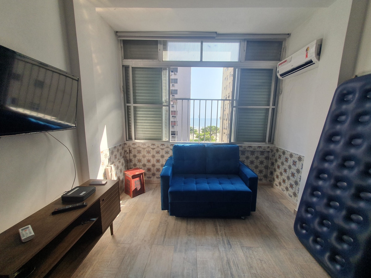 🏖️Situado en Embaré, frente a la playa y entre los canales 4 y 5, ofrece vistas laterales al mar y acceso directo a los jardines frente al mar, ¡solo tienes que cruzar la avenida! 🛍️La zona está llena de servicios: quioscos, bares, restaurantes y tiendas. El supermercado Pão de Açúcar está al lado del edificio, lo que garantiza comodidad. 🛌Ideal para quienes buscan descanso, tiene capacidad para 3 personas. El ambiente es moderno y tiene todo lo que necesitas para disfrutar de tu estancia en la ciudad principal de la costa de São Paulo.