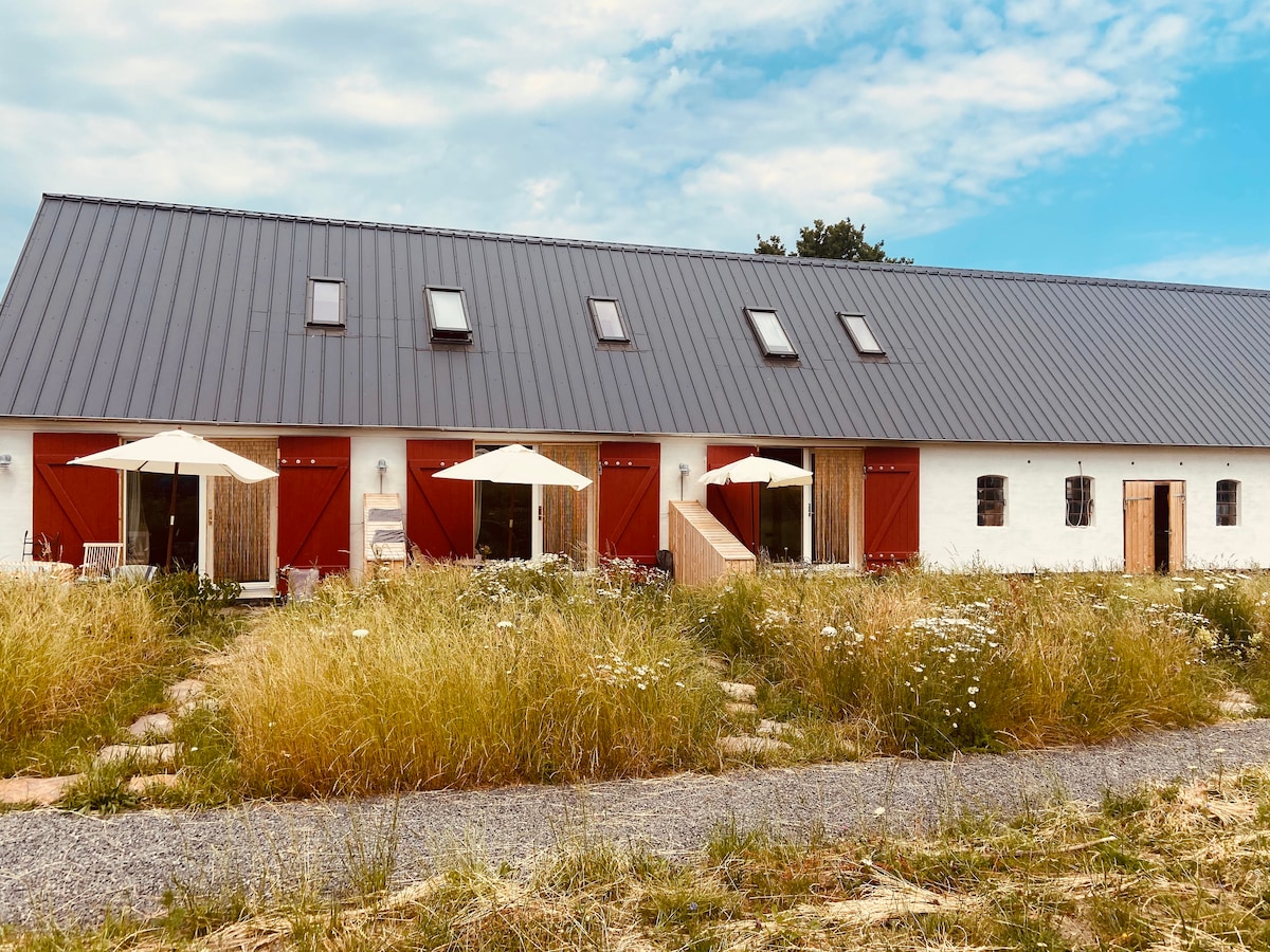 Bienvenido a Myregaard Bed and Breakfast. Nuestra hermosa granja se encuentra en el sur de Bornholm, cerca de la hermosa playa de Dueodde y campos de golf. Usted puede conducir fácilmente o ir en bicicleta al arroyo culinario de serpientes, con su propio ahumadero, chocolatería y cristalería. Ten en cuenta que todo en Bornholm está a la vuelta de la esquina. Cuando llegas a Bornholm, por lo general sucede a través de Rønne en ferry o avión, también hay acceso a Bornholm desde Nexø. Dondequiera que llegue, Myregaard Bed and Breakfast y apartamentos de vacaciones no están lejos de Rønne o Nexø. APARTAMENTO DE 2 DORMITORIOS RECIÉN RENOVADO que consta de un dormitorio doble, cocina moderna y baño, así como un acogedor salón con TV de pantalla plana, reproductor de DVD y wifi gratuito. La sala de estar tiene un sofá cama para 2 personas. La cocina tiene un lavavajillas, un horno de aire caliente, una placa de vitrocerámica y una nevera con congelador. Además del precio del apartamento, usted paga la electricidad y el agua por metro. Medimos cuando llegas y pagas a la salida. Al alquilar el apartamento, se requiere un depósito de seguridad de 550dkk para la limpieza. Sin embargo, este importe solo se cargará a la cuenta si no quieres realizar la limpieza tú mismo. Recuerde traer ropa de cama y toallas, etc. También puede alquilar ropa de cama, etc. de nosotros. Además, tenemos camas de fin de semana, sillas de heno, cochecitos y rompecabezas para niños. Hay una gran terraza preciosa de 35 m2 para el apartamento con excelentes vistas a campos abiertos. En la terraza hay muebles de jardín y tumbonas y grandes y deliciosos webergrills. En la GRANJA también hay una plaza de aparcamiento frente a la granja, así como lavanderías con lavadora, secadora y tabla de planchar que se pueden utilizar por una pequeña tarifa. Hay áreas al aire libre donde se puede hacer barbacoa y disfrutar de la granja. Los niños tienen la oportunidad de utilizar el área de juegos. También hay un comedor donde puede preparar/comprar café, té y usar el microondas/minihorno y la nevera. Todo está disponible en servicio (no hay cocina). Desayuno/cena está disponible y la cena se puede hacer en nuestra parrilla de gas/cocina al aire libre en el patio. Si vas en bicicleta, ten en cuenta que hay 4 km. para el uso más cercano. También alquilamos bicicletas tanto para adultos como para niños. Existe la opción de comprar un desayuno de temporada por un cargo. El desayuno puede incluir avena, muesli, rollos, embutidos, pasteles, café, té, huevos, etc. Nos encantará recibirte en una experiencia feliz en Myregaard Bed & Breakfast.
