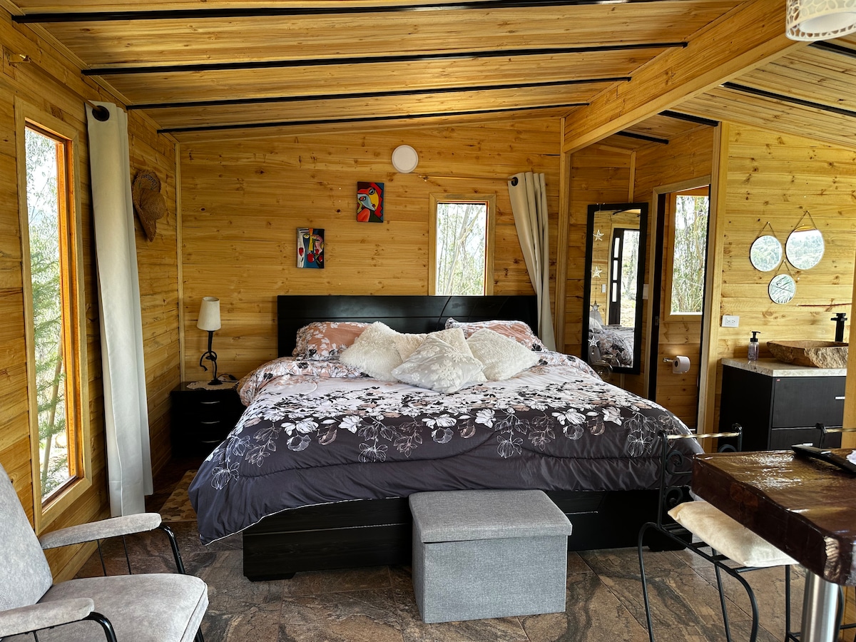 Bienvenidos a este mágico y acogedor refugio rodeado de hermosos árboles y cascadas, aquí te acompañarán el canto de los pájaros y la plenitud de la vida de montaña. Ideal para amantes de la naturaleza que buscan un contacto íntimo con ella y desconectarse de la agitada vida de la ciudad. Podrás emprender caminatas en el bosque o descansar en la terraza contemplando impresionantes paisajes boyacenses. Contarás con todos los servicios de un glamp de lujo a escasos minutos de la civilización.