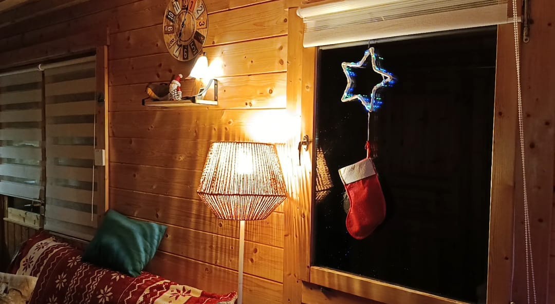 Chalet Noël nature jaccuzi poêle granulés animaux