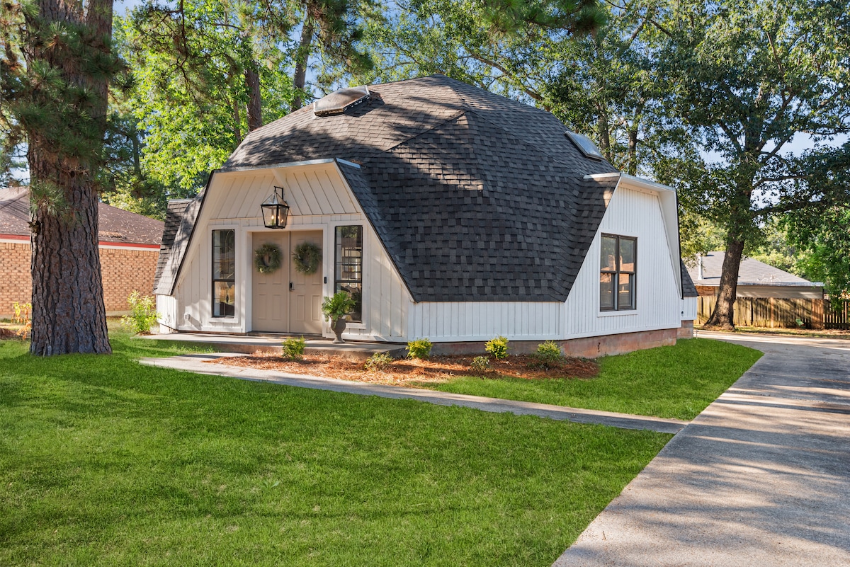 Bienvenido a nuestro dulce hogar. La casa domo es una casa geodésica que ha sido completamente remodelada con toques de mediados de siglo y todas las comodidades y servicios de un hogar. Disfruta de un partido de futbolín o ping pong en la guarida. Suite principal en la planta baja con lujosa cama tamaño king. Arriba hay una cama tamaño queen en un dormitorio con sala de estar y dos camas completas con tienda de juegos y otros servicios para niños. Todas las habitaciones tienen televisores. Patio trasero donde podrás disfrutar de una comida y de tu café por la mañana hecho en nuestro bar de café.